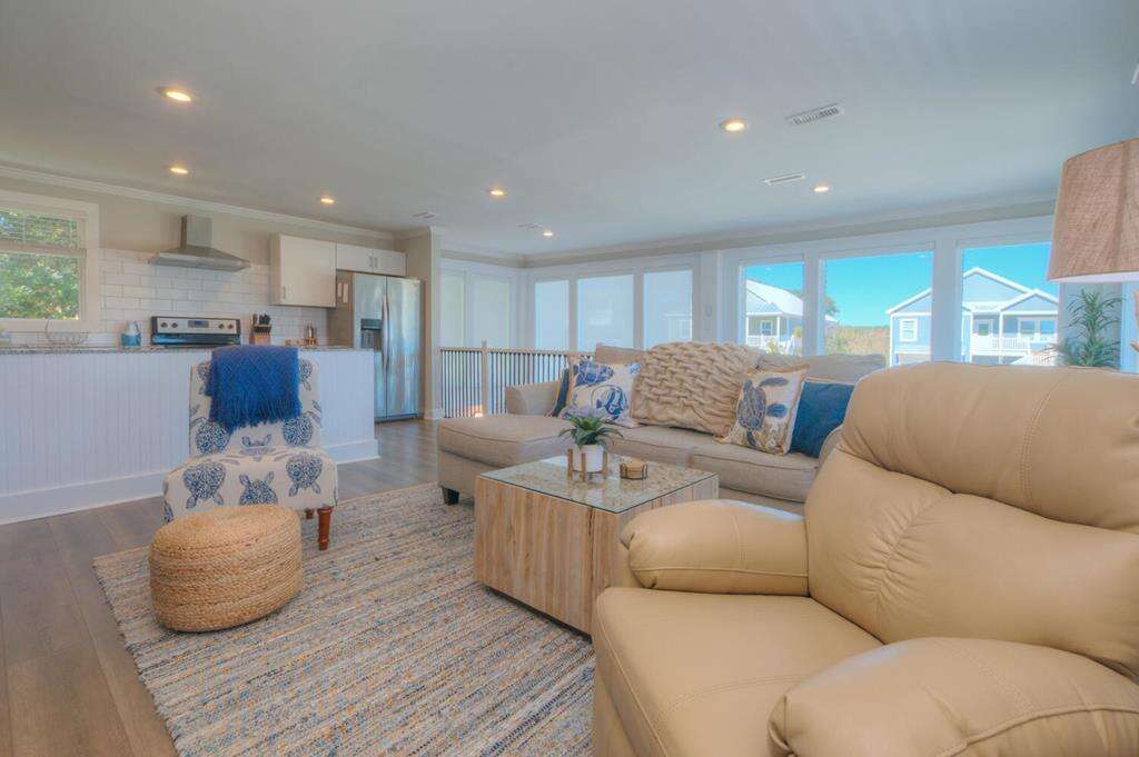 The Blue Crab Cottage is a serene oceanfront house located in Oak Island, NC, offering unforgettable views and a private hot tub for guests' exclusive use. Perfect as a comfortable and spacious place to stay for getaways.