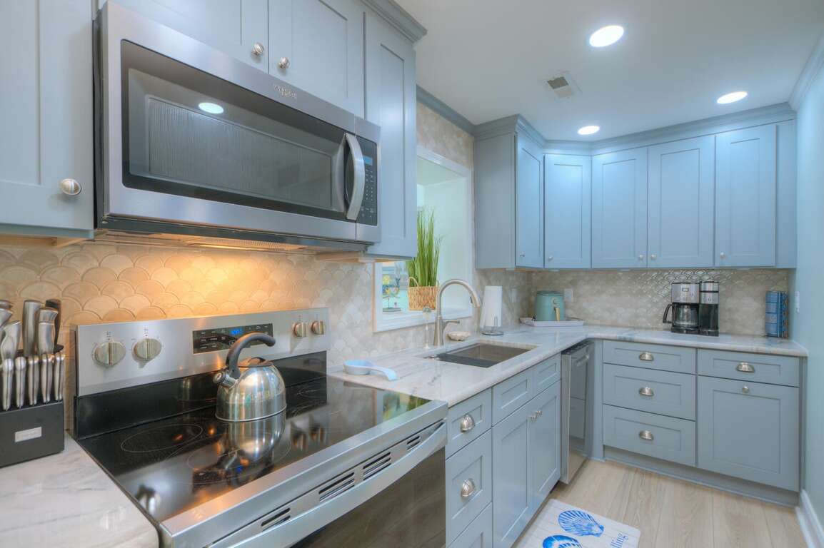 - Kitchen: Quartz countertops. Breakfast bar. Stainless-steel appliances. Refrigerator. 2 Ice makers. Electric range with cooktop. Dishwasher. Microwave. Crockpot. Air fryer. Toaster. Keurig and drip coffee makers. Blender. Stock pot.