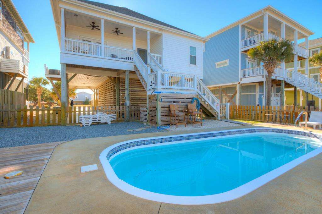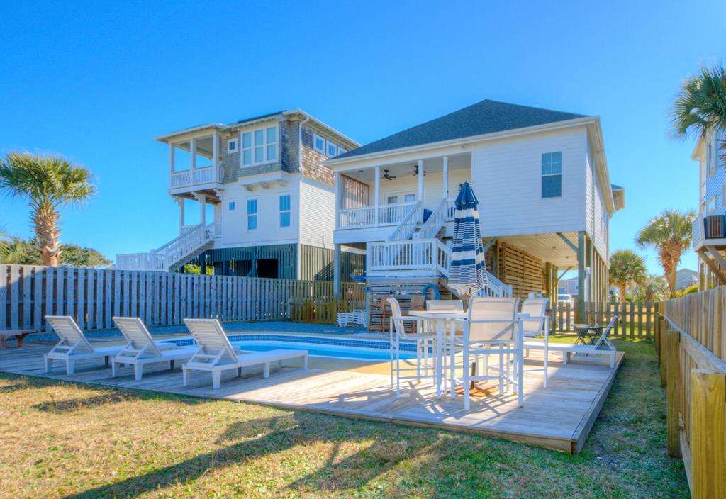 Unwind at Elysium Breeze, a comfortable 3 bedroom rental home located in Oak Island, NC, equipped with amenities like Fireplace, Grill, and a Private Pool.