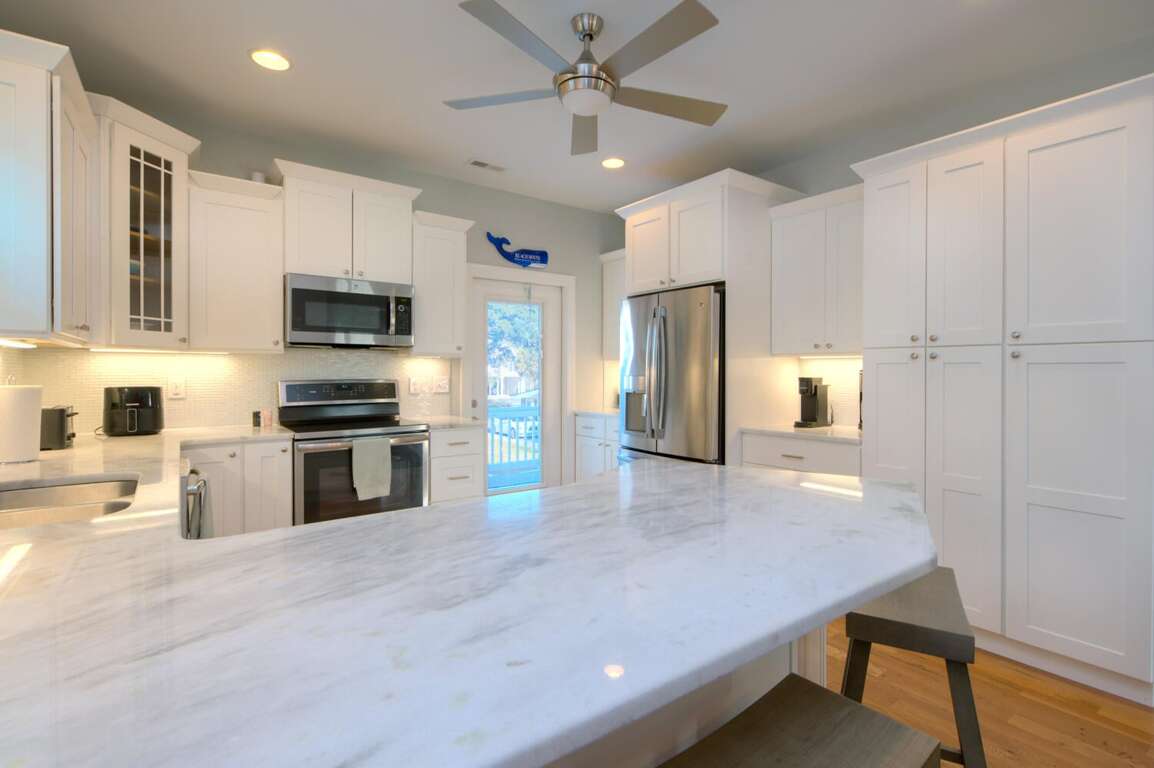 Playing in the Sand gives you the perfect blend of relaxation and convenience – Just a short walk to the beach with a private backyard retreat that is designed for memory-making. Bring the family, your pups, and your favorite people, this is Oak Island living done right.