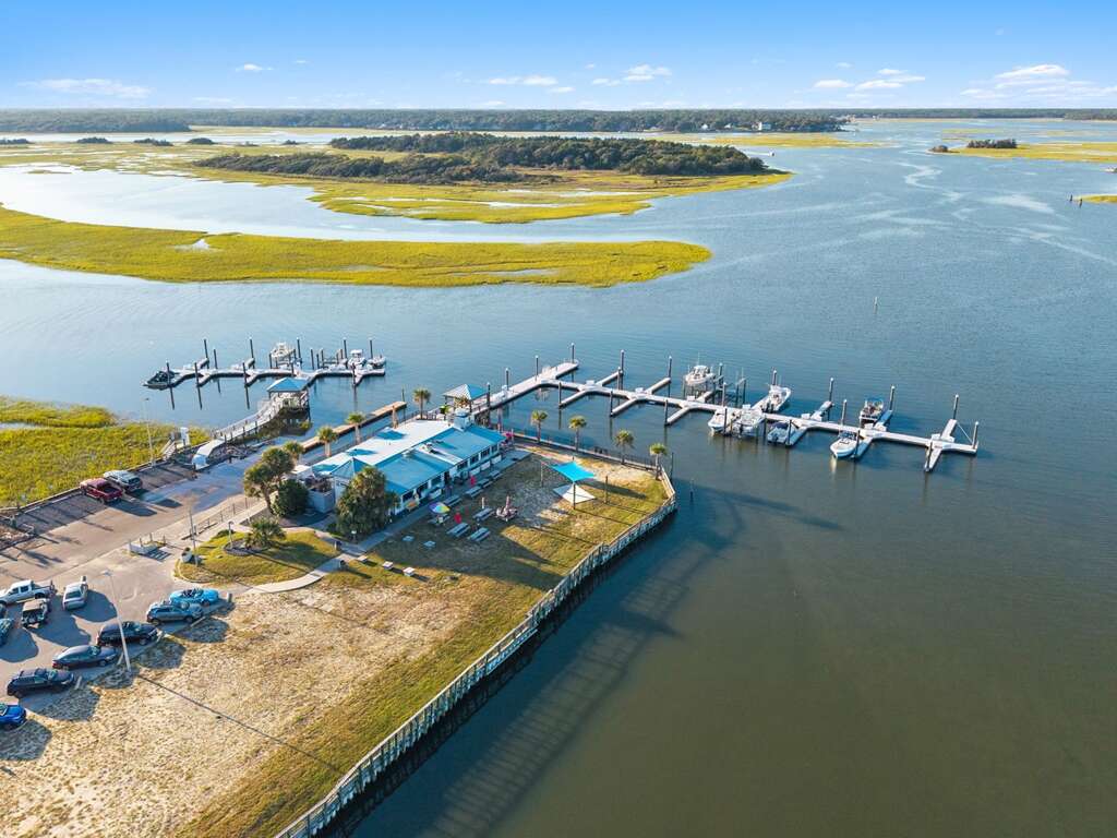 Boat slip vacation rental in Oak Island, NC with a 35' x 13'6" slip at Bluewater Point Marina, offering easy ICW access plus power, water, and a fish cleaning station near the boat ramp.