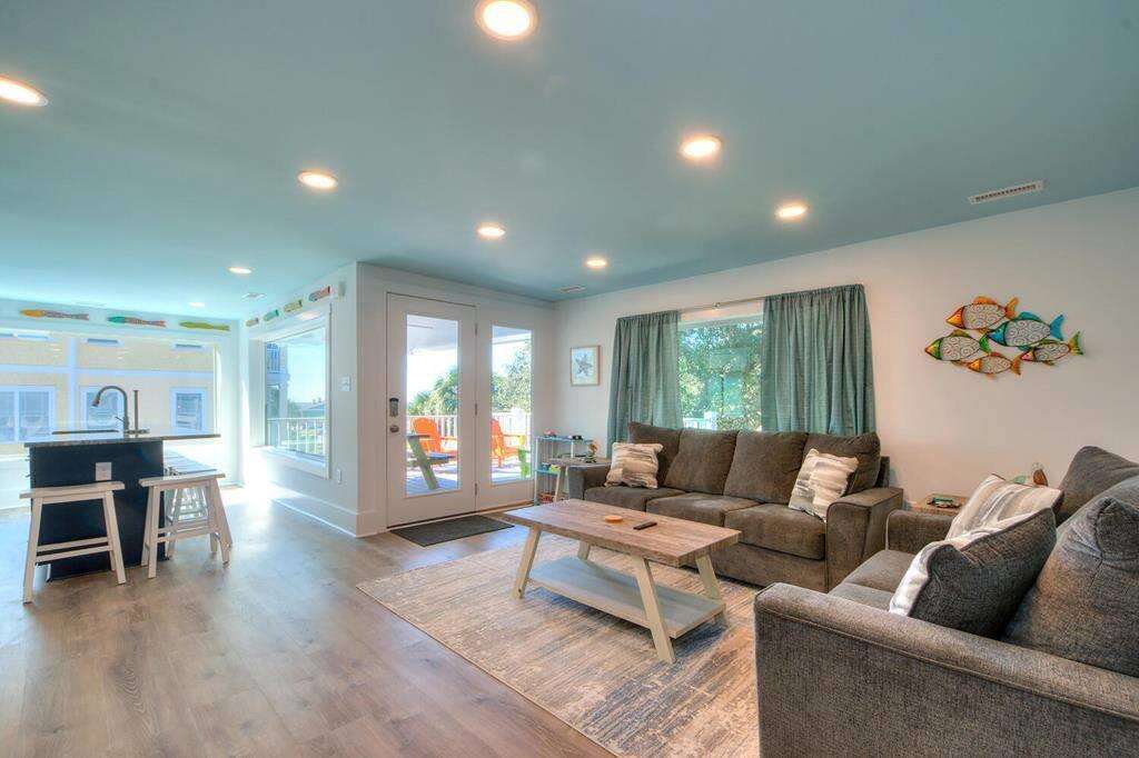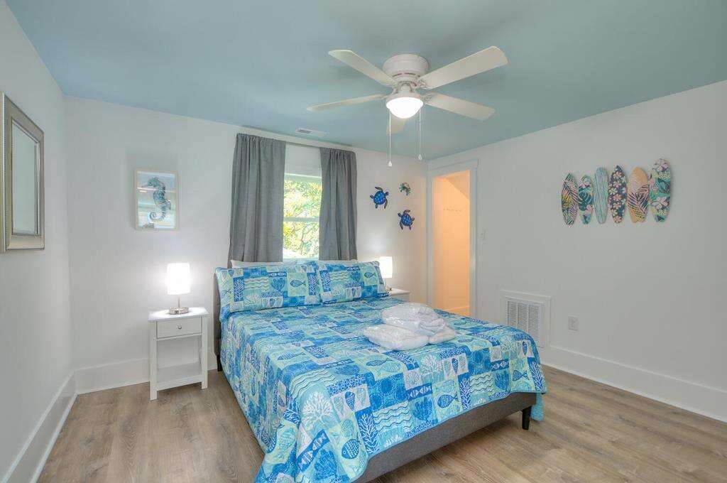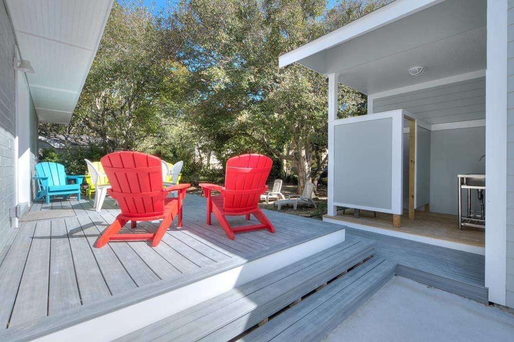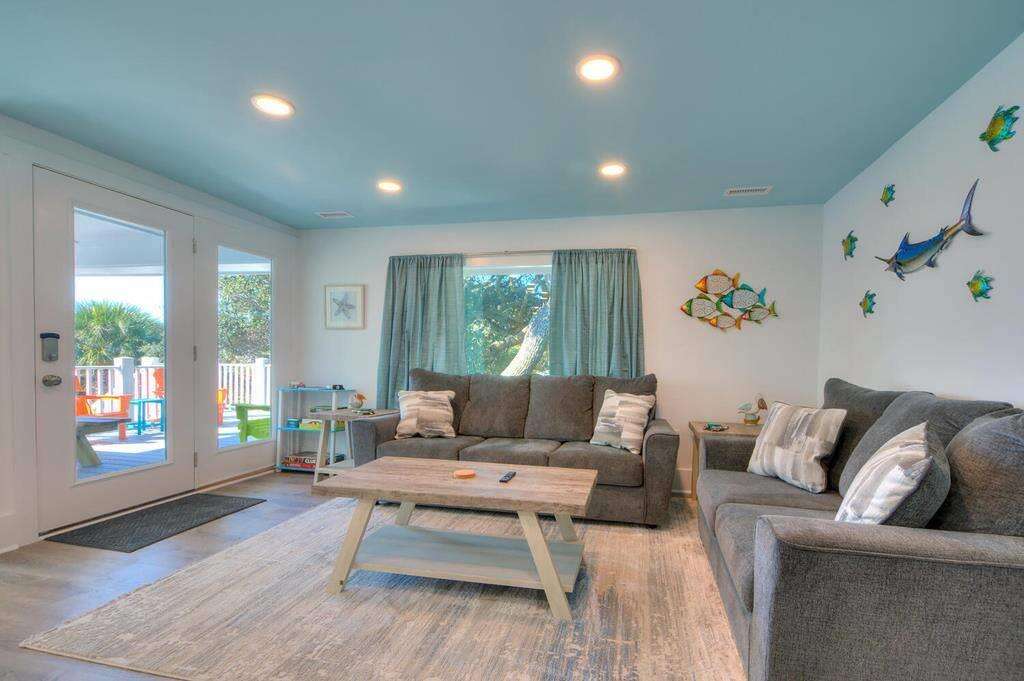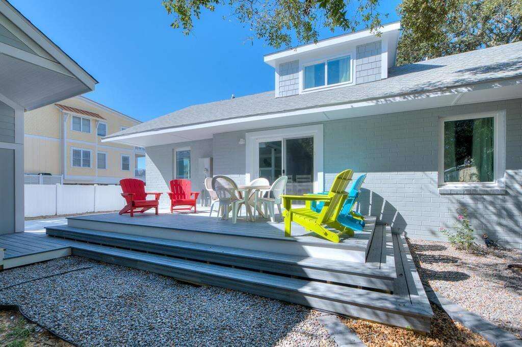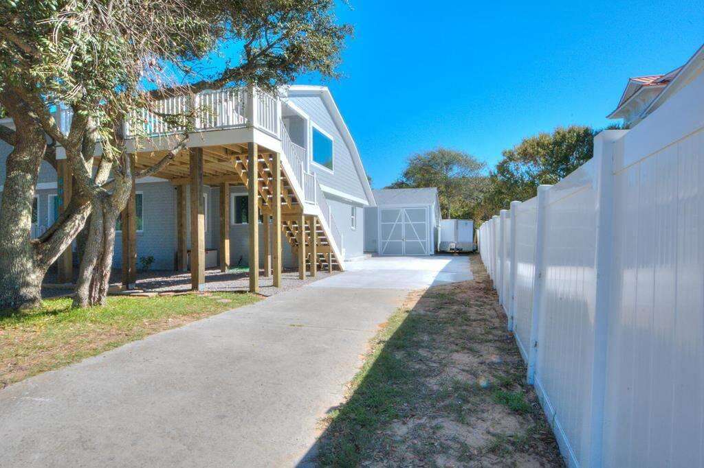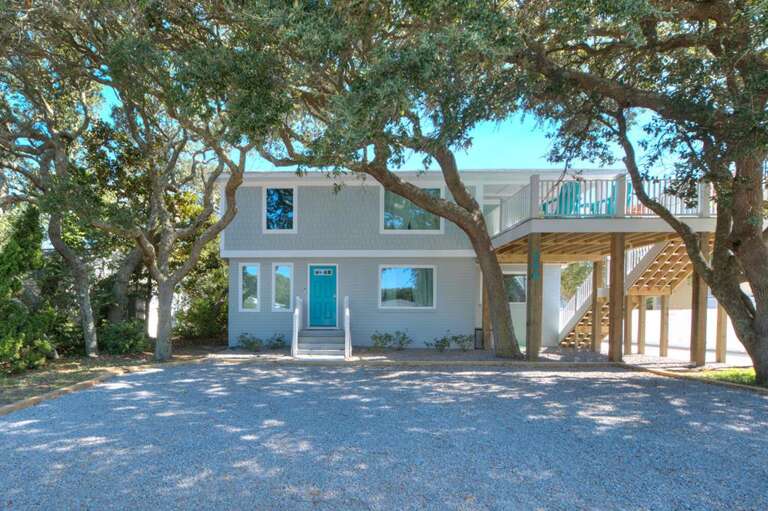 This beautiful duplex-style home is the perfect remedy for everyone to enjoy a fabulous beach vacation! The upper and lower levels of the house are only accessible from the exterior entrances, making it an ideal solution for families or teens who prefer their own space. The lower level offers 4 bedrooms 2 full bathrooms and 1 half bath. The upper level features 3 bedrooms and 1 full bathroom. All beds are queens! The chef in the family will love the spacious and modern kitchen with stainless-steel appliances and a large kitchen island breakfast bar. If you want to grab takeout or dine out some nights, you are conveniently within walking distance to several fantastic restaurants, some of which are even oceanfront! Outside, everyone can be together, lounging by the fire pit in the inviting and shady backyard, or lounge on the upper-level deck with an ocean view. Fishing lovers will enjoy being within just a short stroll from the Oak Island Pier and beach access, as well as having a fish cleaning station right at the house when you return with your catch. Have an electric vehicle? No problem, as this home has a car charging station. Don't wait another minute! The beach is calling! Make your reservation today before this island treasure gets taken!