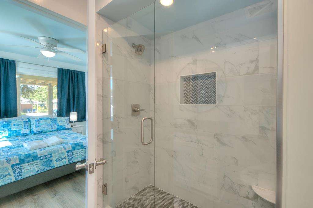 - Enclosed hot/cold outdoor shower