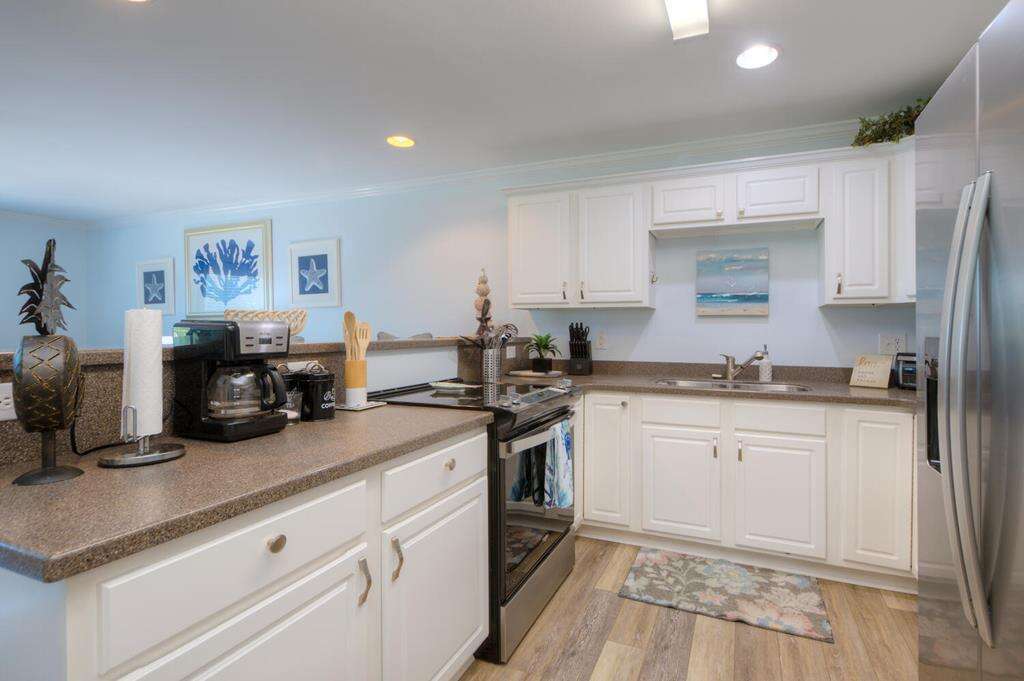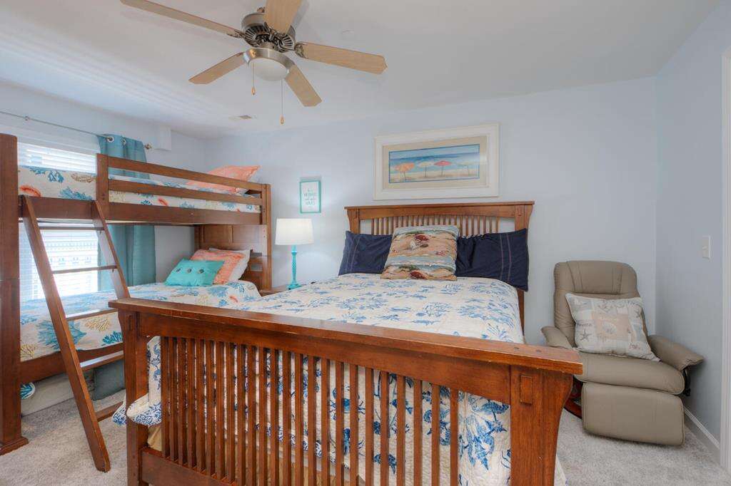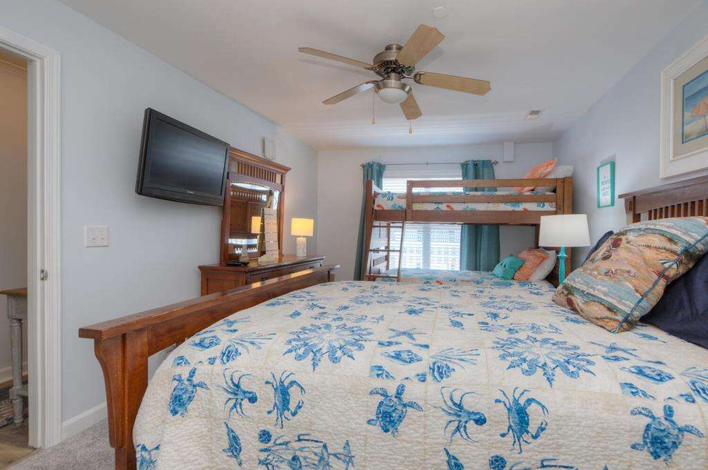 Ocean Walk 6201 - 3 Bedroom 2.5 Bath Condo, Ocean View, Walk to Beach! Please Note: No pets allowed, no exceptions. Beds: 2K, 1Q, 1BB T/T Sleeps 8 Notable and Unique Features: - Two assigned parking spaces - Short walk to the beach access at end of 58th Street - Within short walking distance to shops, parks, restaurants, grocery stores and more - Convenient to more great shopping, restaurants, putt-putt and arcade, Oak Island Golf Course, sky diving, helicopter rides, Oak Island Lighthouse, and other fun activities - Short drive to historic Southport and ferry rides to NC Aquarium and Civil War Museum in Kure Beach and to Bald Head Island - Entertainment: Smart TVs equipped with streaming. Basic cable. TVs in all bedrooms. Board games. Puzzles. - Kitchen: Breakfast bar. Stainless-steel appliances. Refrigerator with ice maker. Electric range with cooktop. Dishwasher. Microwave. Crockpot. Griddle. Toaster oven. Toaster. Blender. Stock pot. - Elderly friendly (Elevator in the building) - Covered balcony - Community Amenities: Pool (closed in off-season). Grill and picnic area. Outdoor shower. - No pets allowed Standard Features: - Bed linens and towel sets (shower towel, hand towel and washcloth) provided per the capacity of the house - Fully equipped kitchen - Free Wifi - Drip coffee maker - Iron and ironing board - Washer and dryer - Departure housekeeping - Non-smoking This gorgeous and cozy condo is sure to make your Oak Island vacation truly memorable! Enjoy two bedrooms with King size beds and one bedroom with a Queen and Twin over Twin Bunk - perfect for families, couples or a group of friends. Take advantage of incredible amenities such as, TVs in all the bedrooms, free WIFI, a fully stocked kitchen, a covered balcony and even great community amenities like a large pool, elevator, plus a grill and picnic area. Conveniently located in the heart of Oak Island within walking distance to shops, restaurants, the beach and more, you will have everything you need!