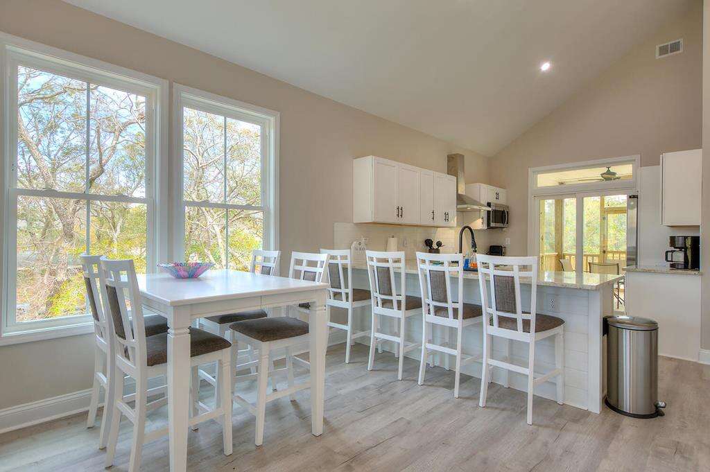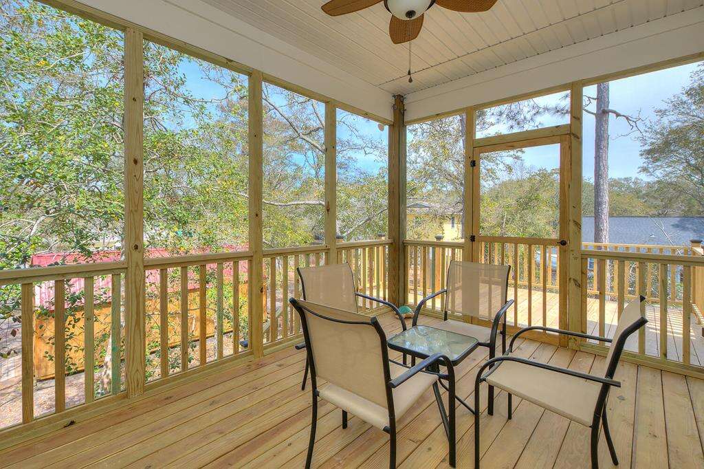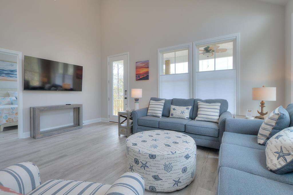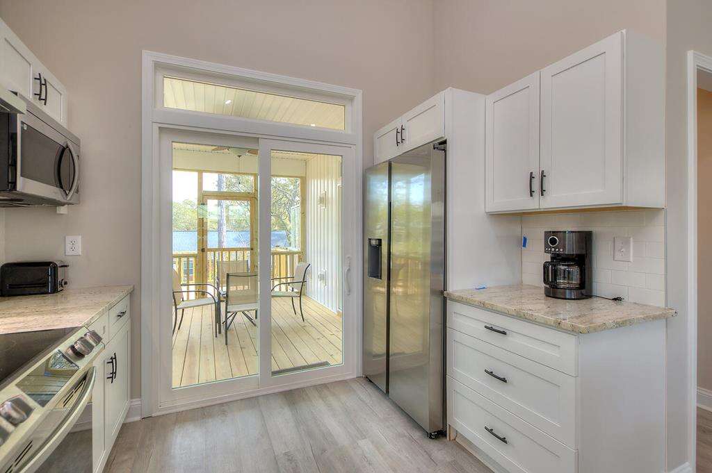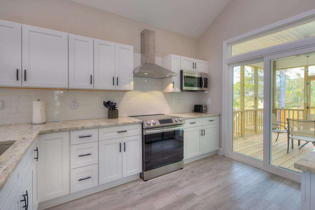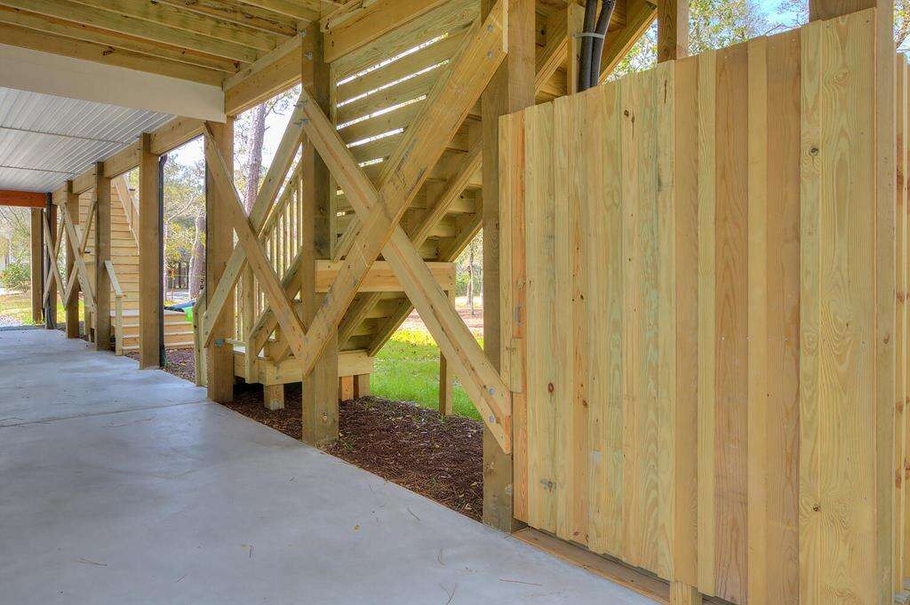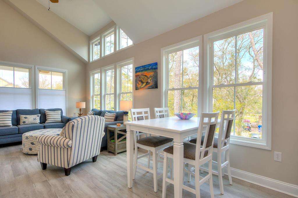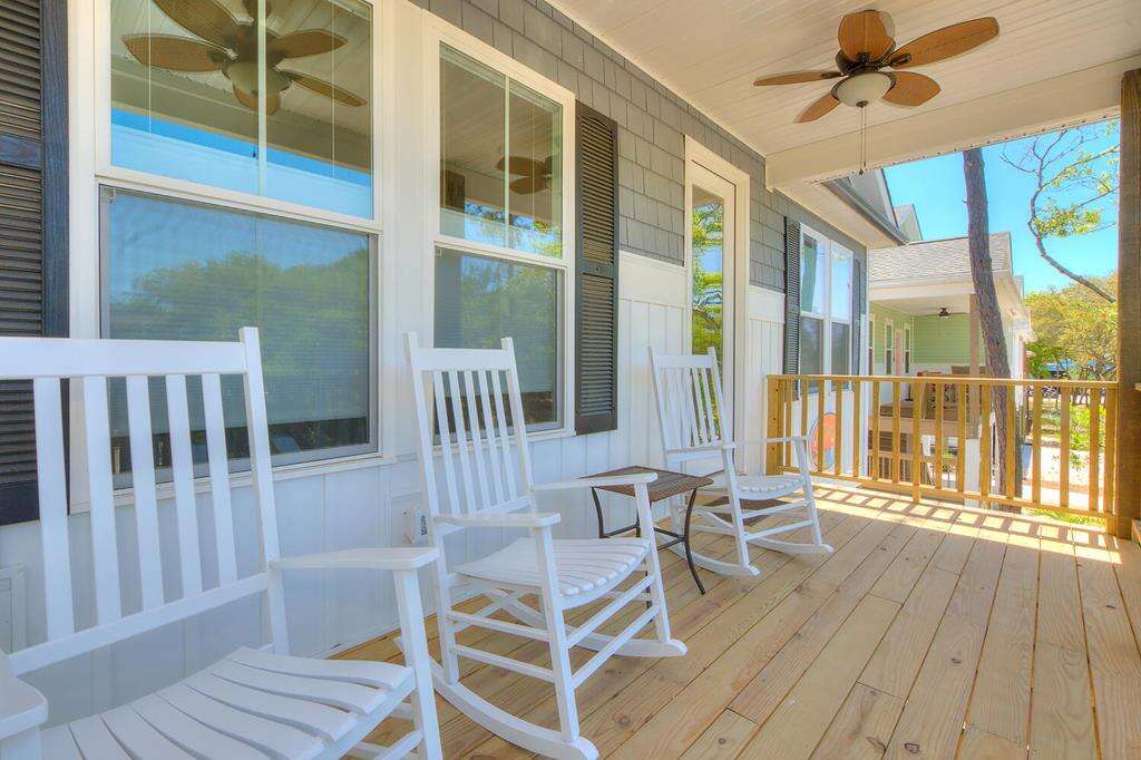 New-construction house in Oak Island with a gourmet kitchen, screened porch, and outdoor elevator; a practical vacation rental home near nature trails, piers, fishing, shopping, and Southport.