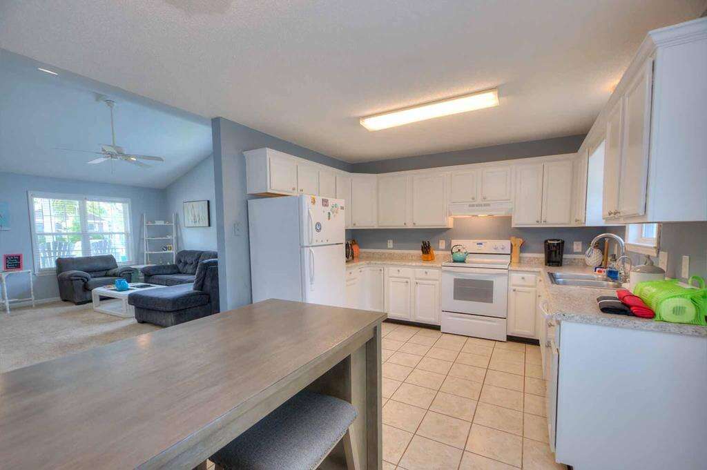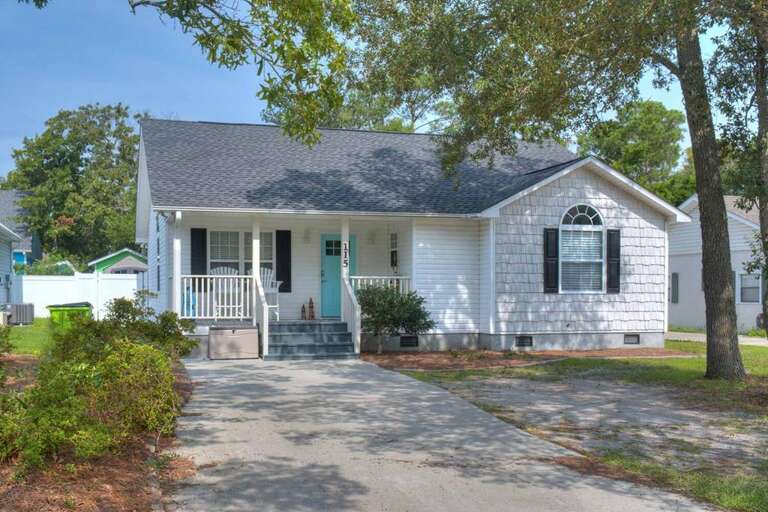House vacation rental in Oak Island near the Intracoastal Waterway, with 3 bedrooms, a fenced yard for dogs, and quick access to the OKI Rec Center and the walkover to the oceanside of the island.