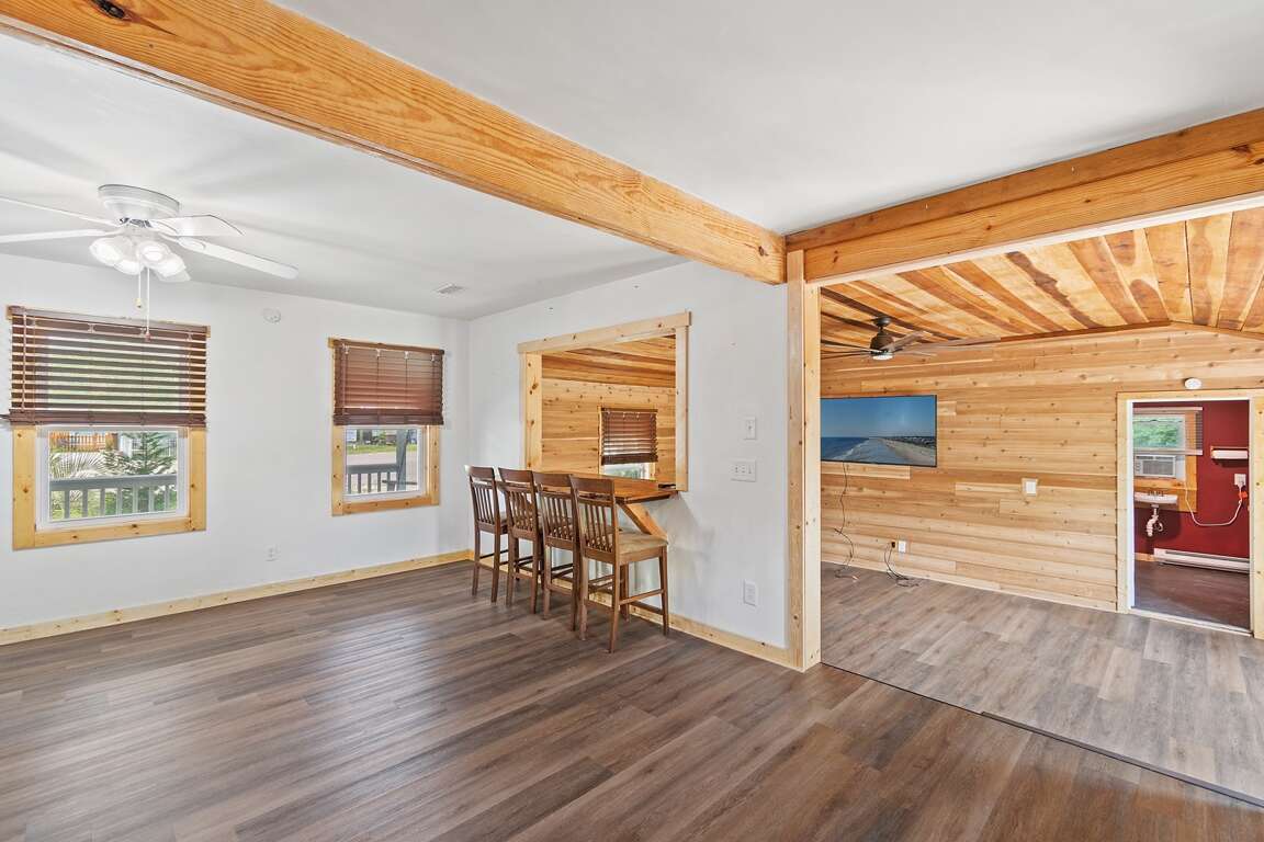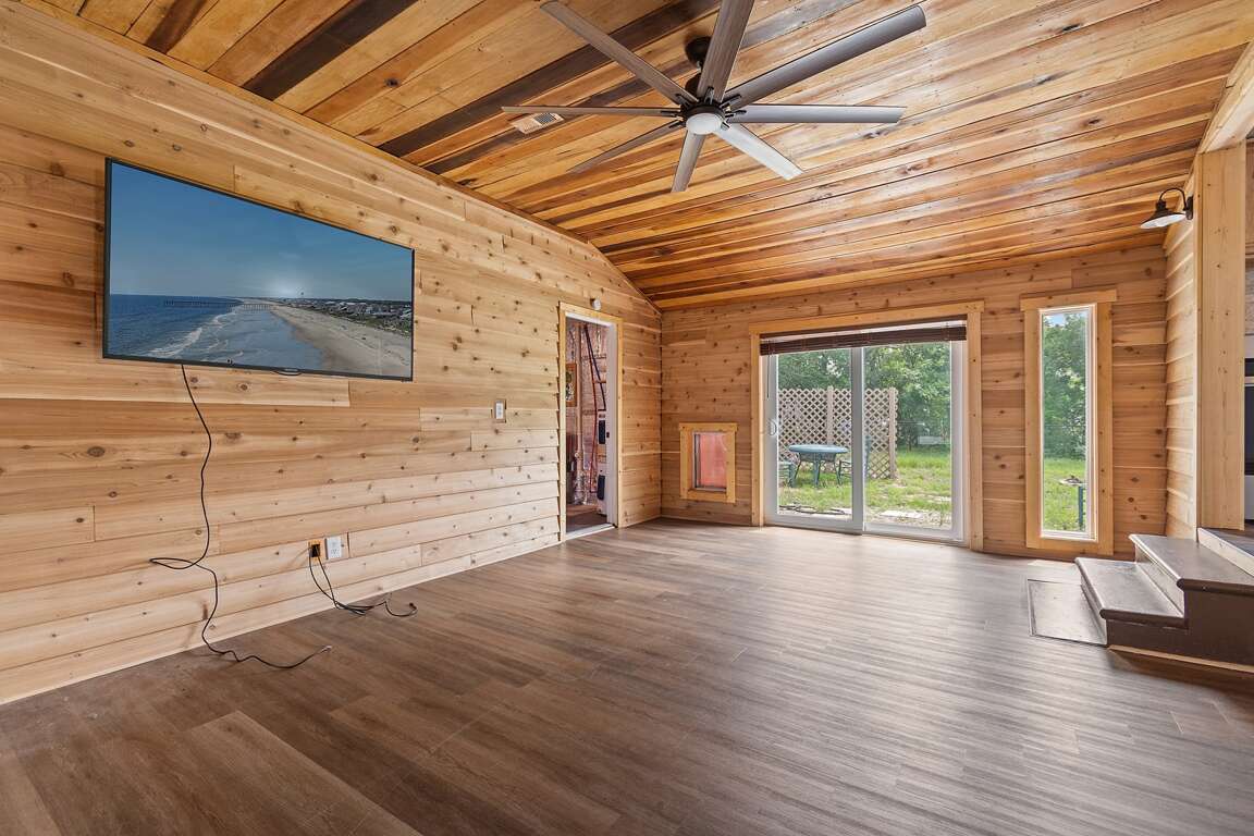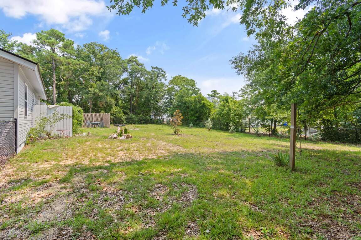 Three-bedroom home in Oak Island with quick beach access, a practical place to stay for longer visits; this vacation rental allows dogs with approval and includes a carport, with no dishwasher.