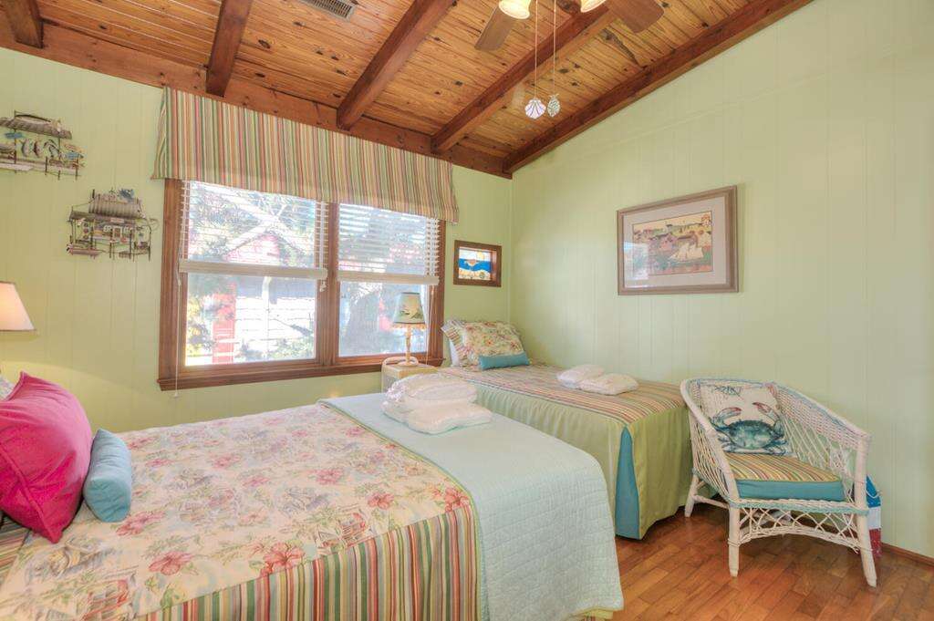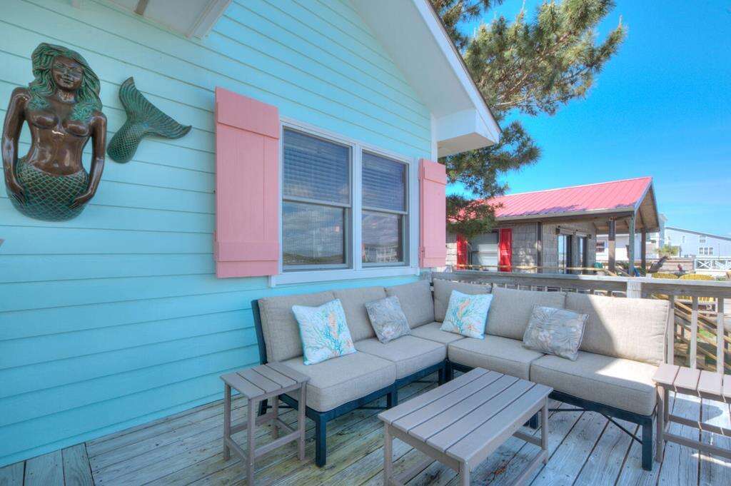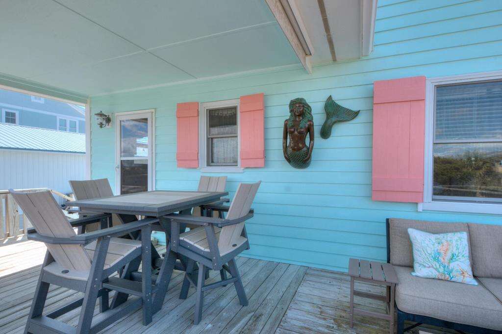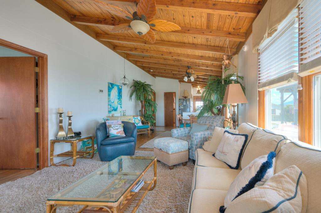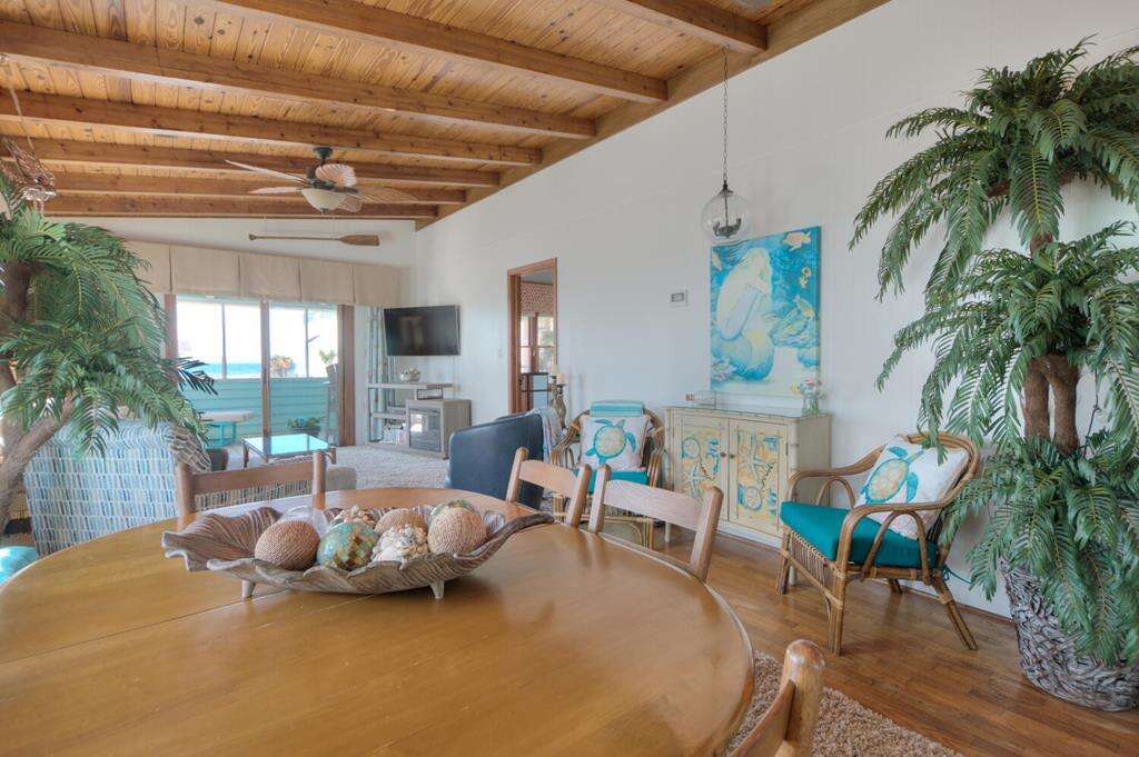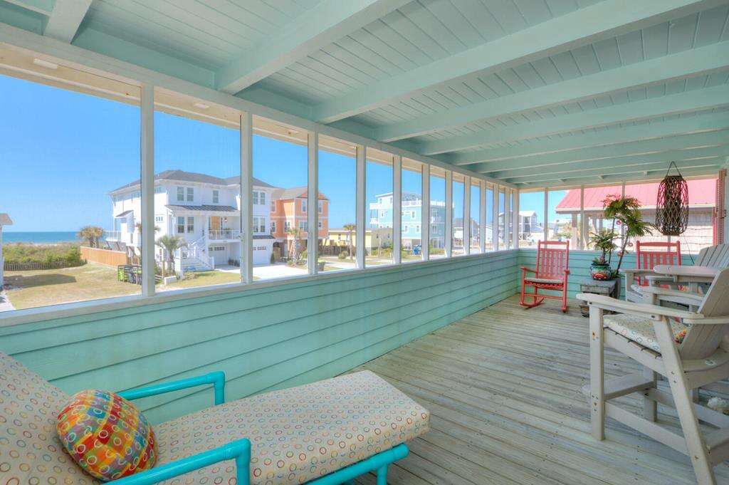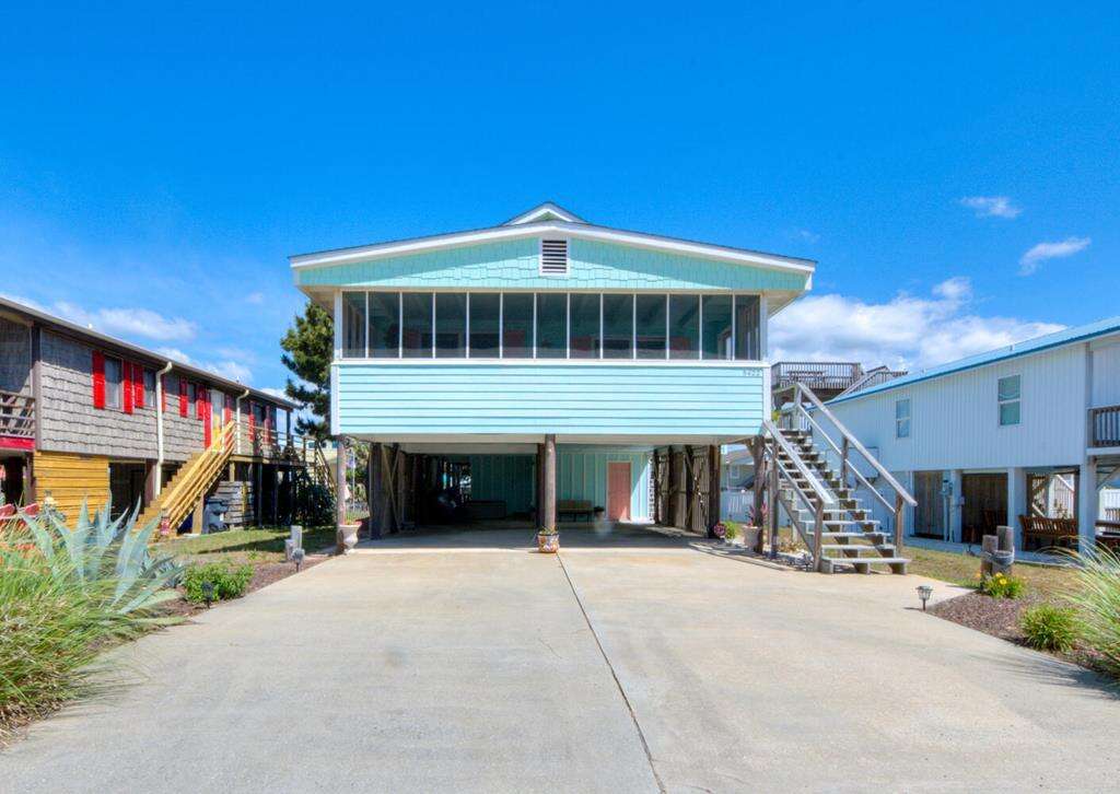 House vacation rental in Oak Island with 3 bedrooms, ocean views, and easy beach access via 57th Place; a practical place to stay near the west end, boat ramp, dining, golf, and a short drive to Southport.