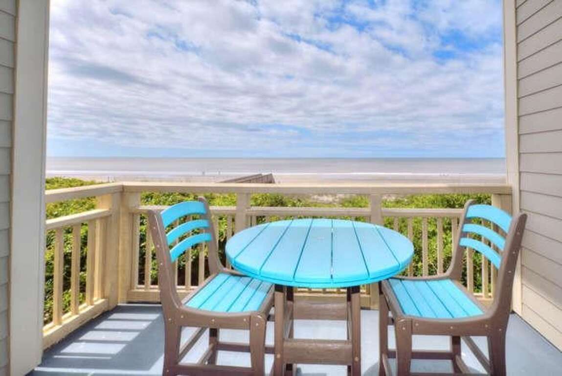 Oceanfront condo rental in Oak Island with two balconies for sunrise and sunset views, plus pool and playground access, WiFi, and private beach access for a practical place to stay near the golf course.
