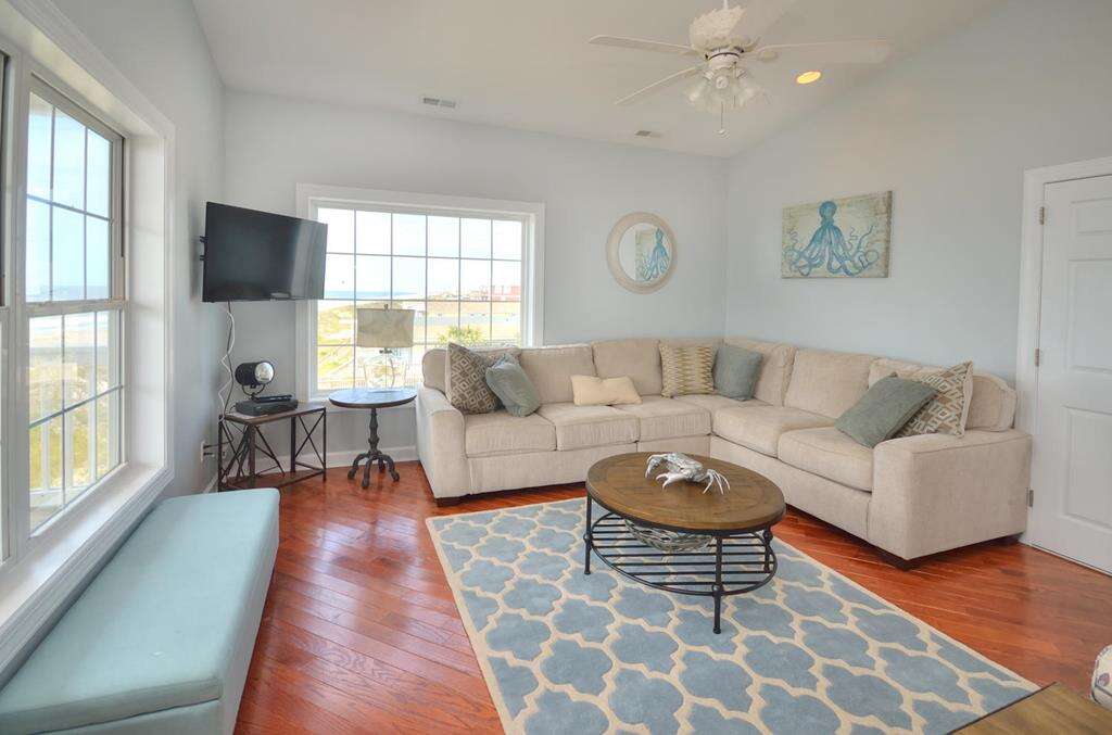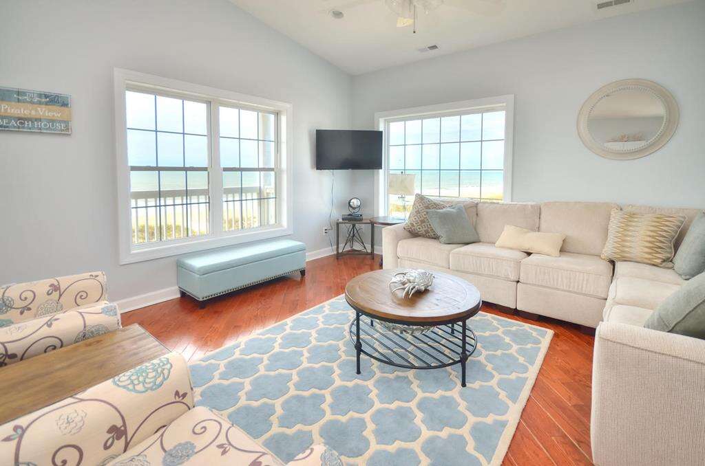 Pirates View - 6 Bedroom, 4 1/2 Bathroom, Private Pool, Sleeps 16 Absolutely beautiful, ocean front,. The views are outstanding from this home as you can see Old Baldy and Bald Head Island, the Oak Island Lighthouse and Caswell Beach, all of Oak Island, and in the distance, Holden Beach. Enjoy in inverted plan with a open floor plan upstairs of the kitchen, dining, and family rooms along with 2 bedroom suites and 1/2 bath. Downstairs, plenty of room with a 2nd ocean front family room, and 4 more bedrooms. Enjoy extra family space on one of the 2 oceanfront decks. Conveniently located just down the street from the Oak Island Pier, and the Oak Island Golf Course. Easy access on and off the island. This "Pirates View" home is spacious enoughfor the kids and grandkids with room to spare. Don't miss out on this great opportunity to bring your family and make the life lasting memories.