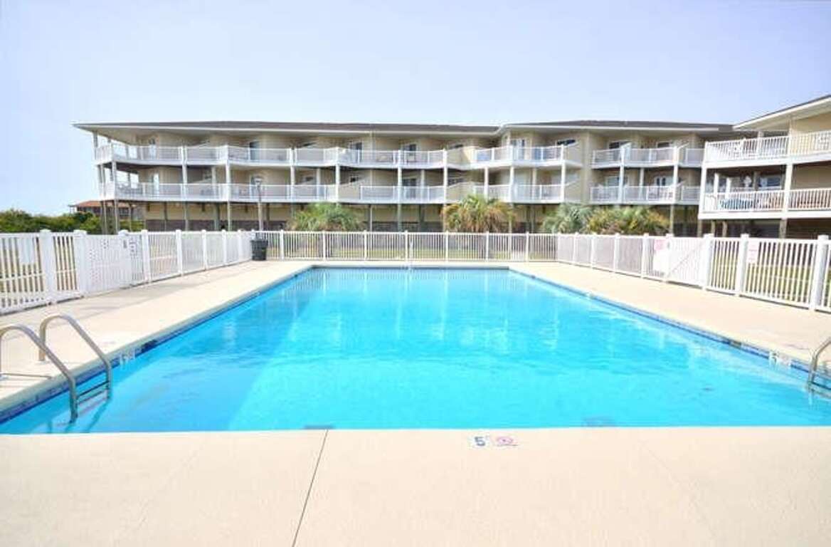 Oceanfront condo vacation rental in Oak Island with 3 bedrooms for groups, featuring a private balcony and seasonal community pool access, plus walkable dining, shops, and nearby piers.