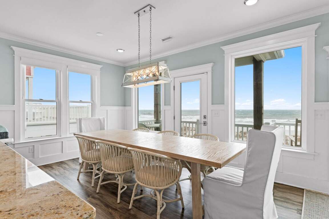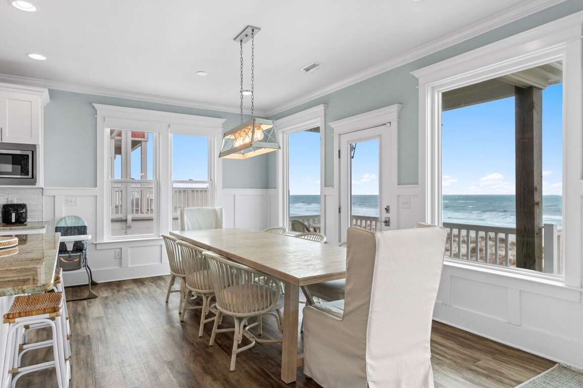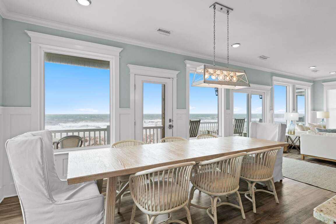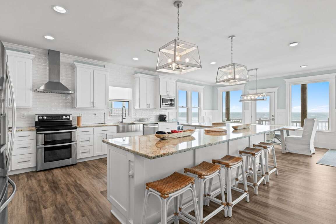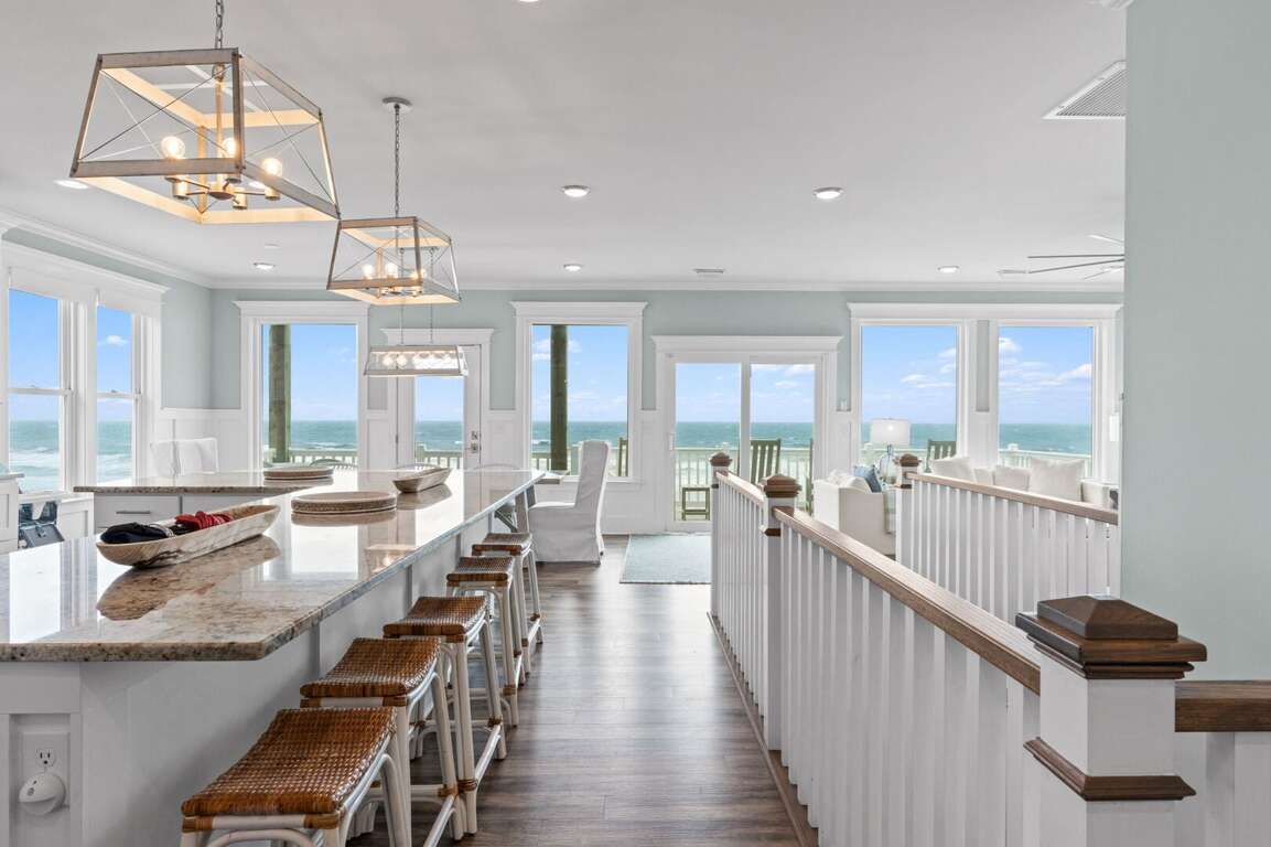 This exquisite home combines modern luxury and style with the utmost comfort and relaxation for your beach vacation pleasure. Breathtaking ocean views greet you at almost every turn, as expansive floor-to-ceiling windows on the top level open-concept living, dining and kitchen make you feel as though you are floating on the Atlantic Ocean. The chef-style gourmet kitchen offers an oasis for culinary creations while you soak in the ocean views that lie beyond. Ample counter and cabinet space make cooking preparations a breeze, and you won't miss out on the fun since everyone can easily be together.