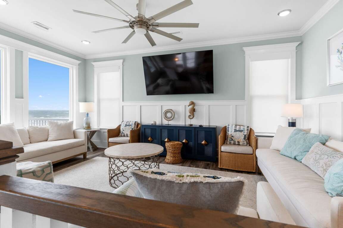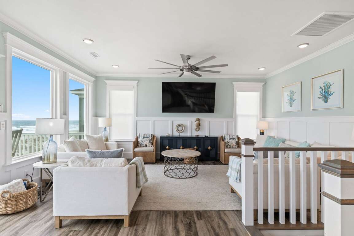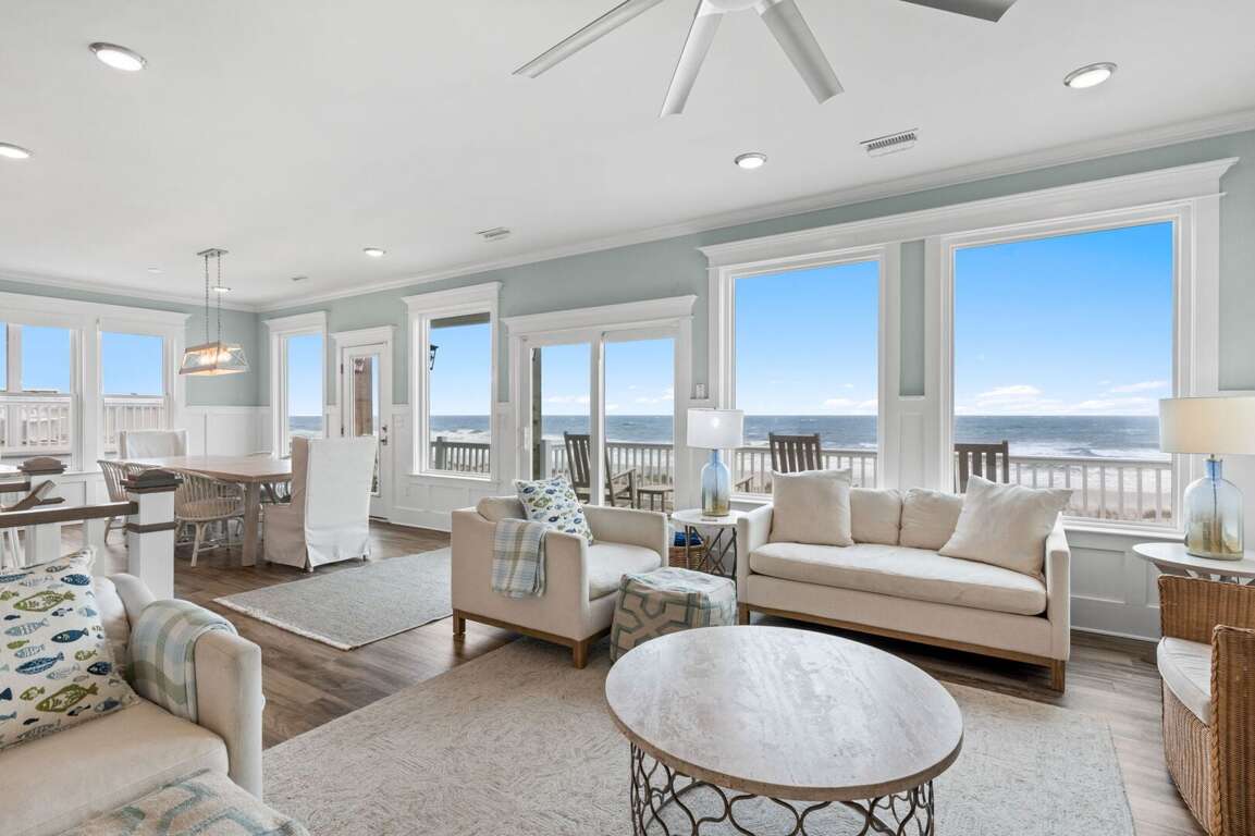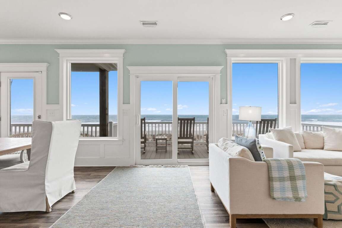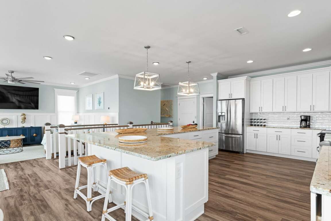 This exquisite home combines modern luxury and style with the utmost comfort and relaxation for your beach vacation pleasure. Breathtaking ocean views greet you at almost every turn, as expansive floor-to-ceiling windows on the top level open-concept living, dining and kitchen make you feel as though you are floating on the Atlantic Ocean. The chef-style gourmet kitchen offers an oasis for culinary creations while you soak in the ocean views that lie beyond. Ample counter and cabinet space make cooking preparations a breeze, and you won't miss out on the fun since everyone can easily be together.