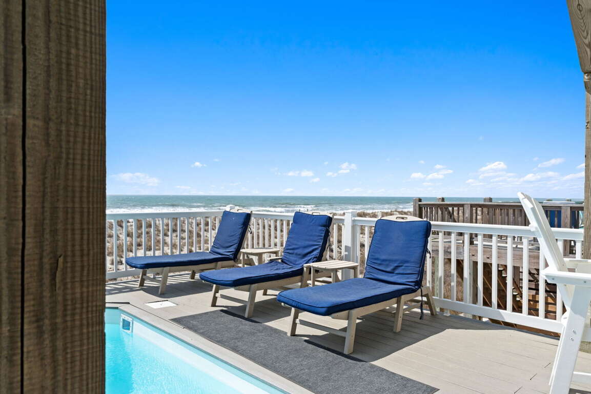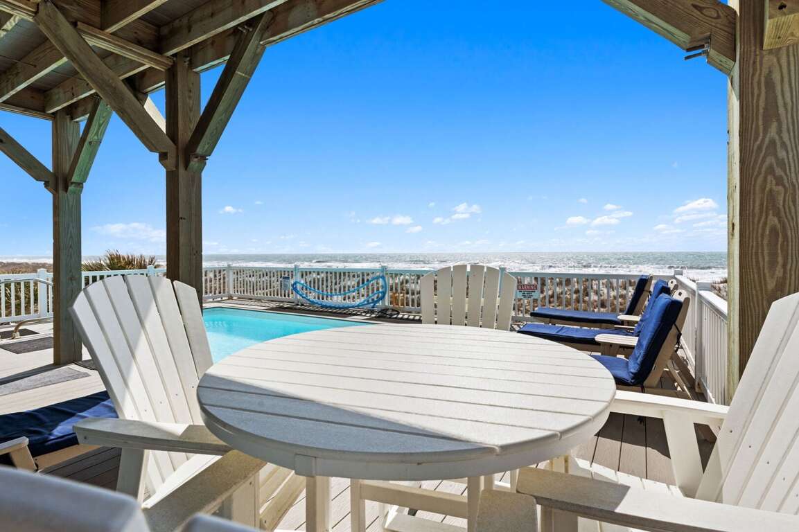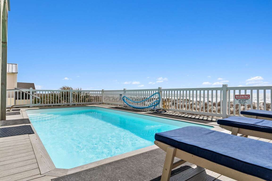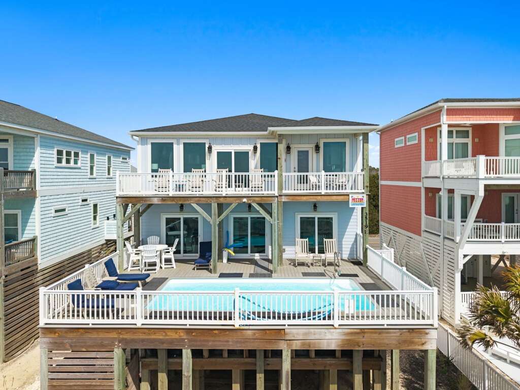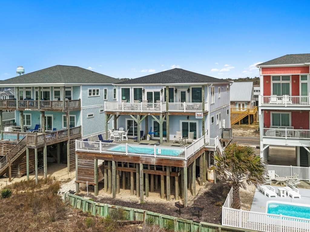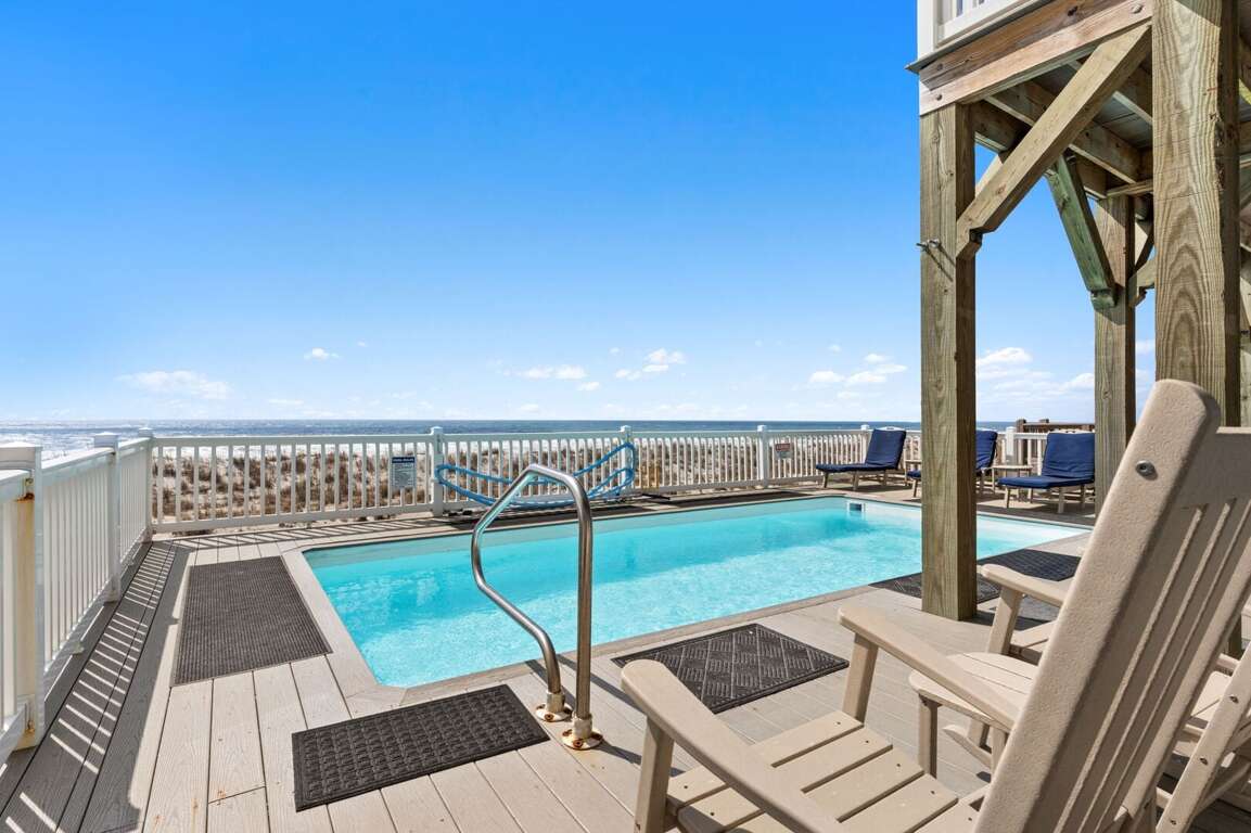 Oceanfront place to stay in Oak Island with 7 bedrooms, ocean-view living spaces, and a saltwater pool; this beach house rental is walkable to Ocean Crest Pier, parks, dining, and trails.