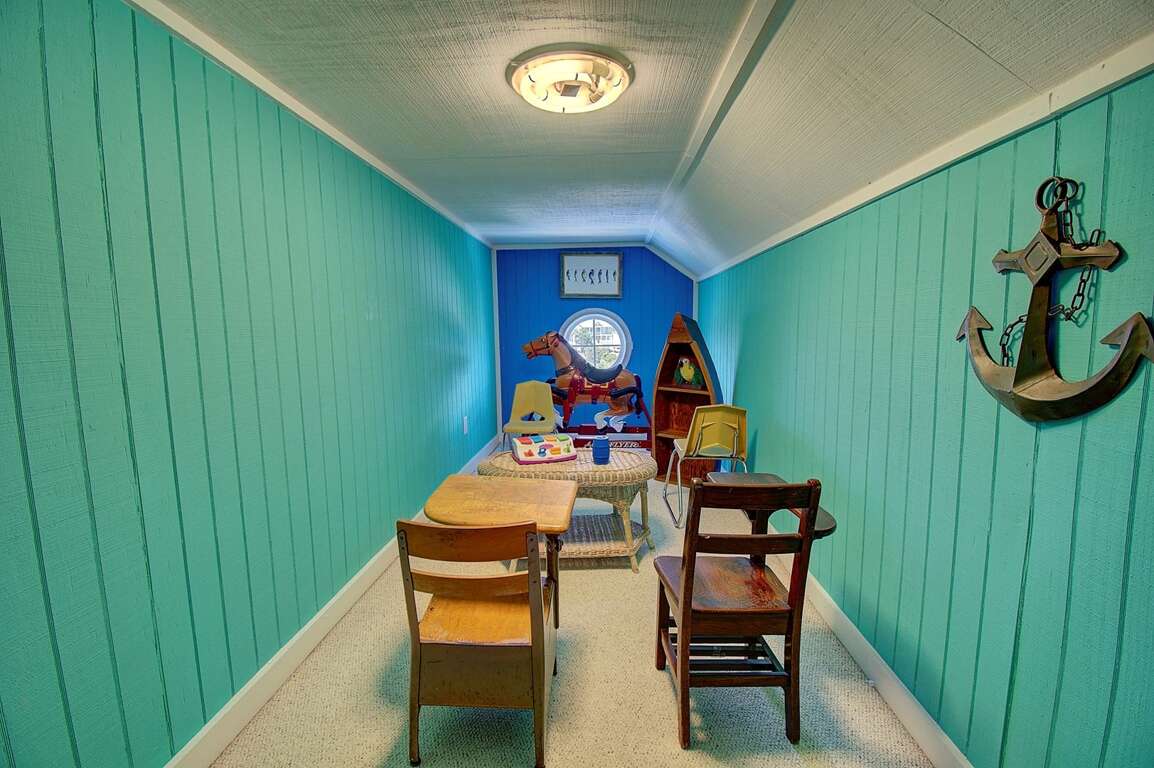 The interior of Mystic Point offers a blend of modern amenities and cozy charm, ensuring a comfortable and inviting stay for guests. Each bedroom is equipped with memory foam mattresses, promising a restful night's sleep. The two living areas cater to different preferences, with a great room featuring a 47' HDTV and surround sound for entertainment, while a loft provides a quieter space with a queen sleeper couch and 42' HDTV. Families with children will appreciate the designated play area, allowing kids to have their own fun space. Whether lounging in the living room, enjoying a movie night, or relaxing in the well-appointed bedrooms, guests at Mystic Point will find a perfect balance of relaxation and modern convenience.