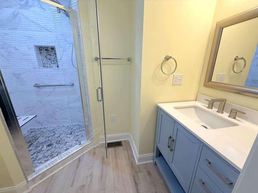 Indulge in the modern comforts and conveniences of this outstanding vacation rental situated in Oak Island, NC. Enjoy stunning ocean views from the comfort of rocking chairs on the property's porch, providing a serene backdrop for relaxation. The newly renovated space boasts gleaming hardwood floors, a fresh kitchen, and stylish living room furniture, creating a welcoming atmosphere for guests. Additionally, guests can take advantage of the outside shower after a day at the nearby sea, enhancing the beach experience. For added convenience, the property management services guarantee a hassle-free stay. Embrace the beauty of Oak Island while experiencing exceptional amenities and features during your getaway.