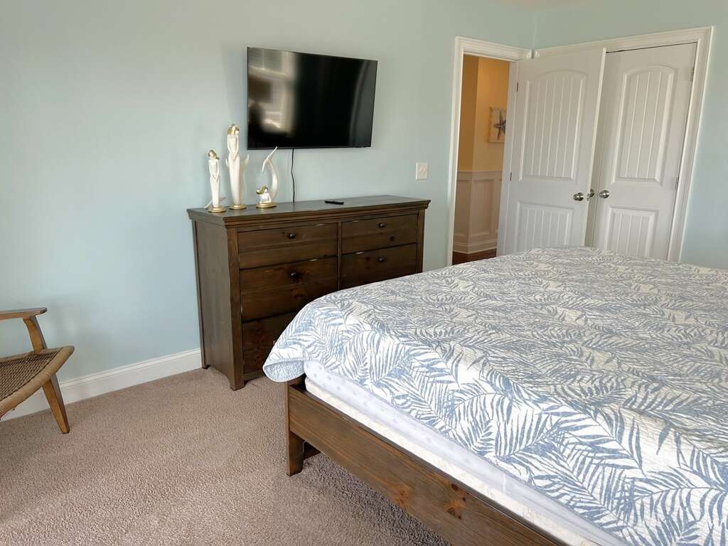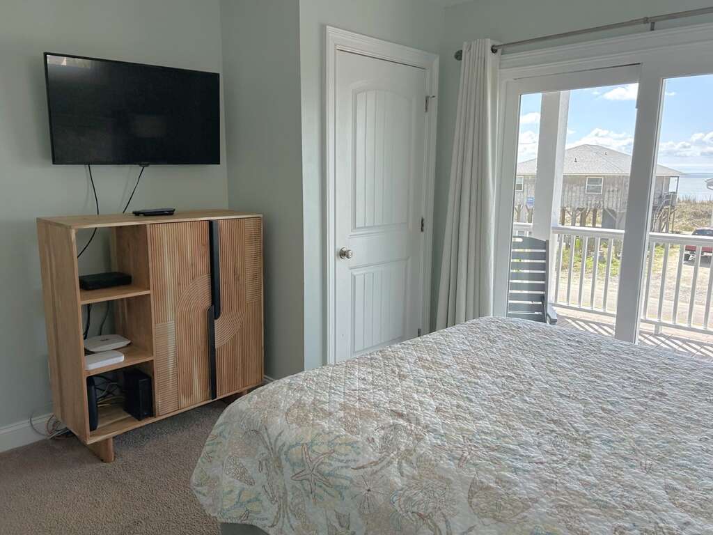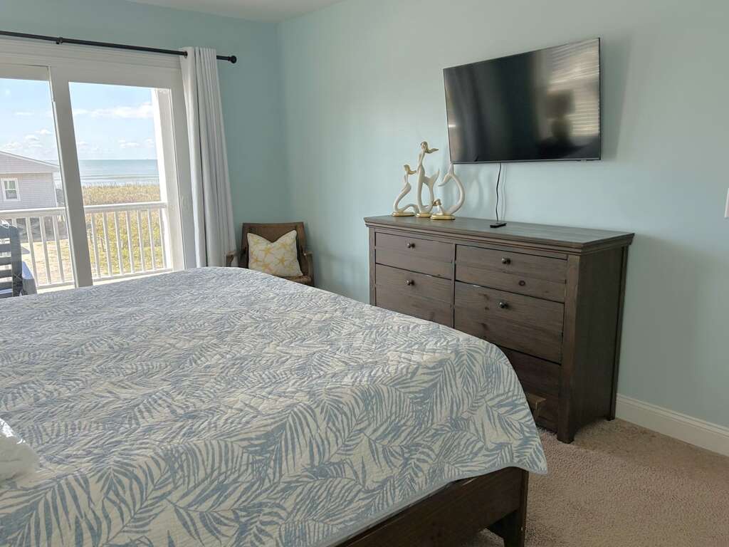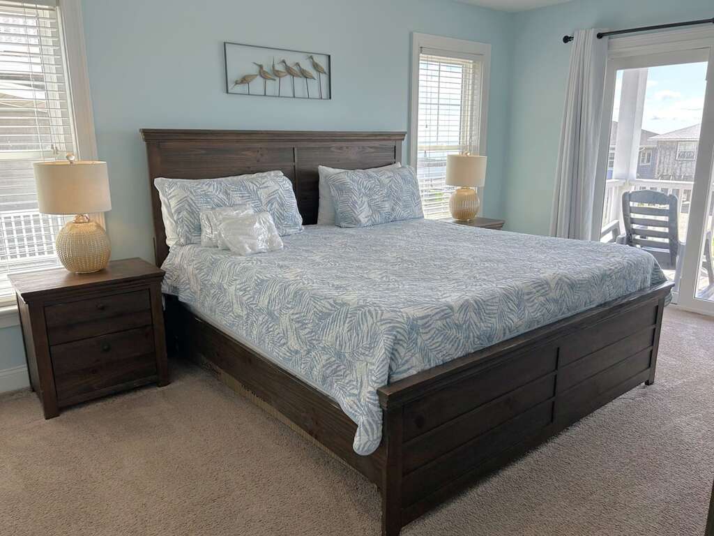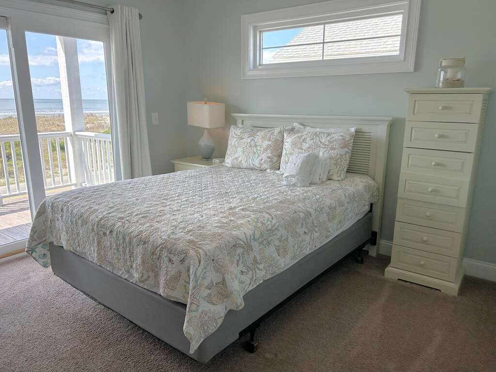 The master bedroom suite has 1 king bed. Bedroom 2, facing the ocean,n has 1 queen bed. Bedroom 3, which is the center ocean-facing bedroom, has 2 sets of bunk beds as twin over twin. Bedroom 4, off the rear of the home, overlooks the pool area, is next to the lower deck,k and has 1 queen bed. Bedroom 5, located upstairs beside the kitchen, has 1 queen bed.