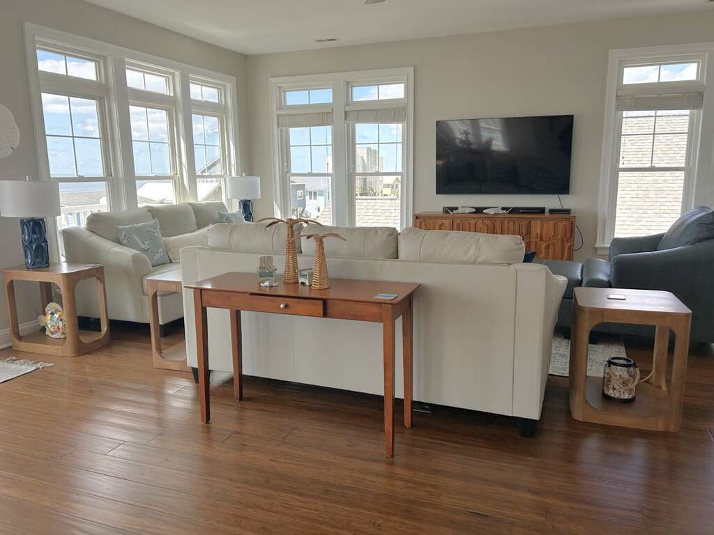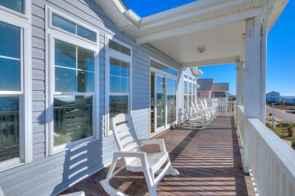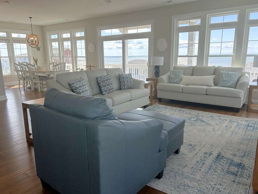 The spacious top floor includes a family room, kitchen, and dining room where everyone can be together. The top floor features a wall of windows offering magnificent ocean views that will simply take your breath away. Step out on one of the ocean-side covered porches or slide over to an uncovered sun deck to sunbathe without the sand.