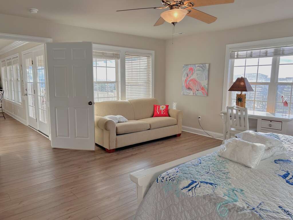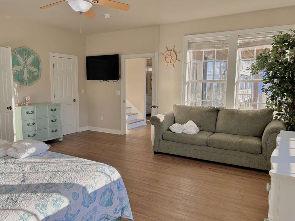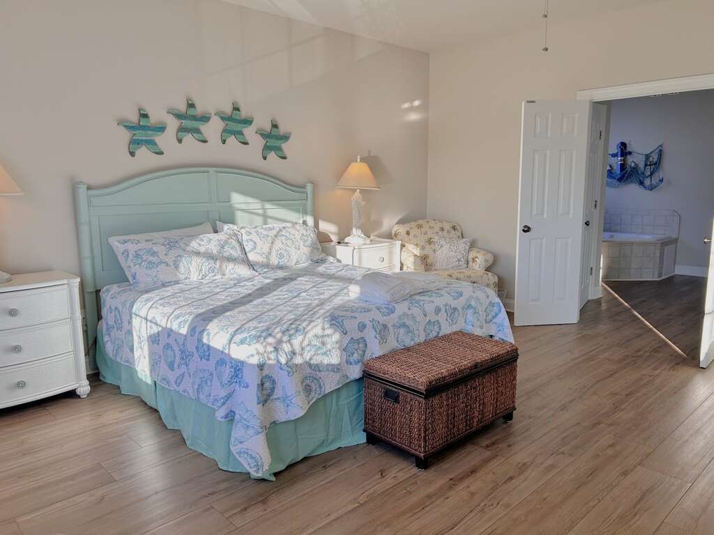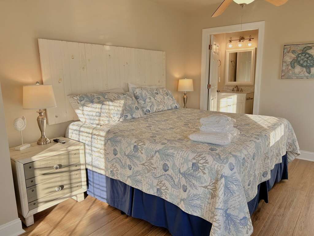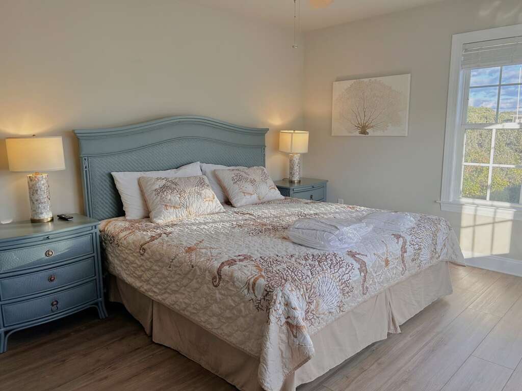 The bedrooms at Paradise By the Sea are thoughtfully designed to provide comfort and convenience for all guests, featuring a variety of bed configurations and amenities to guarantee a relaxing stay. Each room is carefully curated to cater to different preferences, with some bedrooms offering cozy seating arrangements perfect for unwinding after a long day at the beach. Additionally, guests can enjoy quiet moments in the reading nooks provided in select rooms, ideal for those seeking a peaceful retreat. With flat-screen TVs in all rooms, guests can also relax in bed or catch up on their favorite shows. The two master suites each boast a queen sleeper sofa, adding an extra layer of comfort and flexibility to the sleeping arrangements.