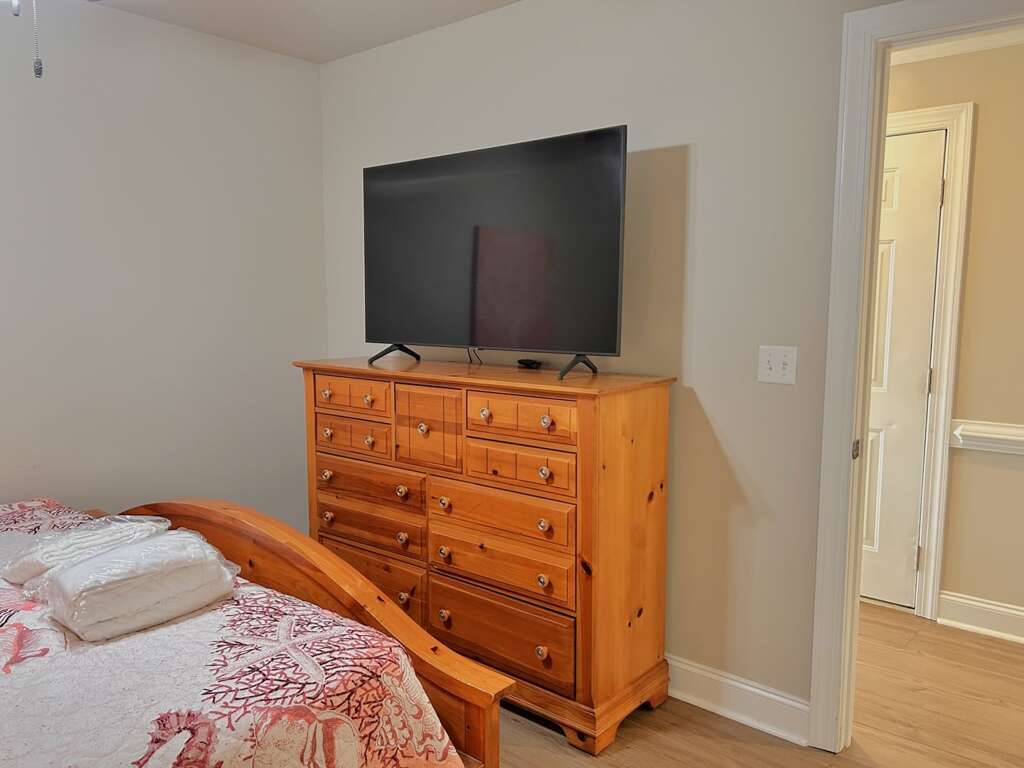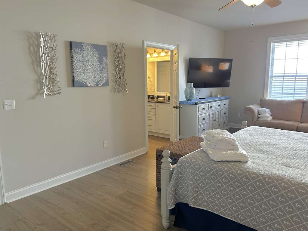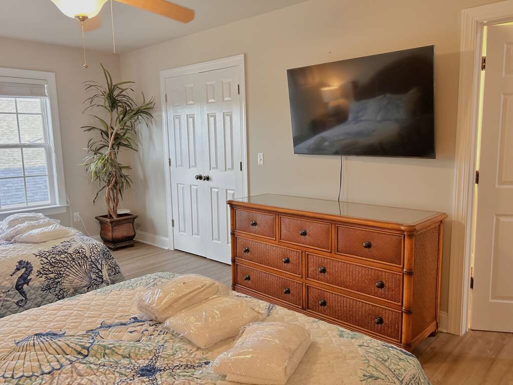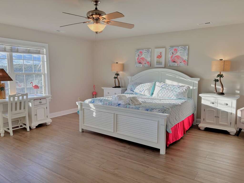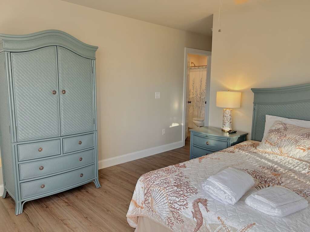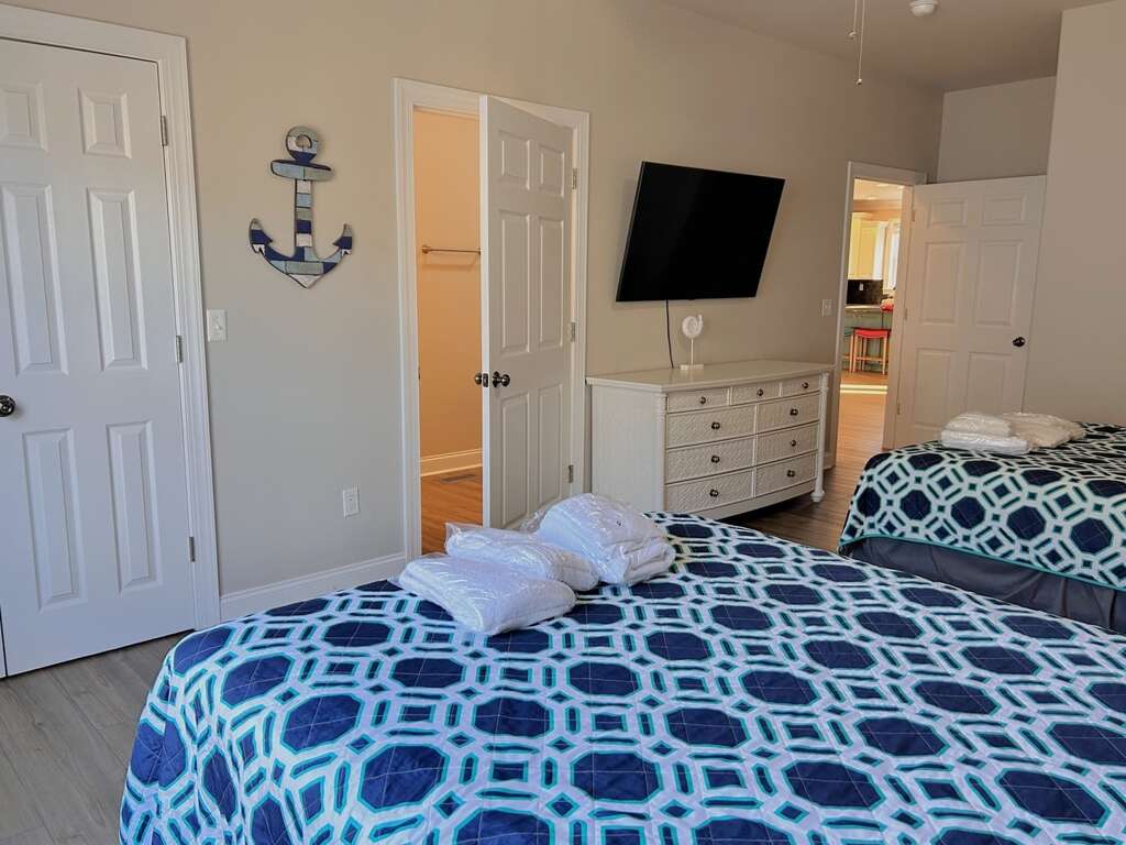 The bedrooms at Paradise By the Sea are thoughtfully designed to provide comfort and convenience for all guests, featuring a variety of bed configurations and amenities to guarantee a relaxing stay. Each room is carefully curated to cater to different preferences, with some bedrooms offering cozy seating arrangements perfect for unwinding after a long day at the beach. Additionally, guests can enjoy quiet moments in the reading nooks provided in select rooms, ideal for those seeking a peaceful retreat. With flat-screen TVs in all rooms, guests can also relax in bed or catch up on their favorite shows. The two master suites each boast a queen sleeper sofa, adding an extra layer of comfort and flexibility to the sleeping arrangements.