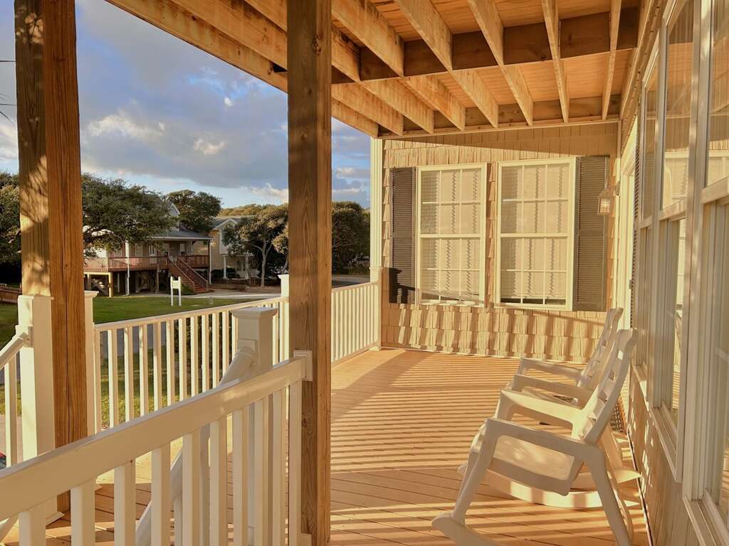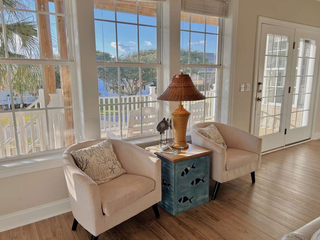 Set against the tranquil coastal backdrop of Oak Island, the outdoor retreat at Paradise By the Sea provides a harmonious blend of relaxation and recreation for guests looking to unwind and reconnect with nature.