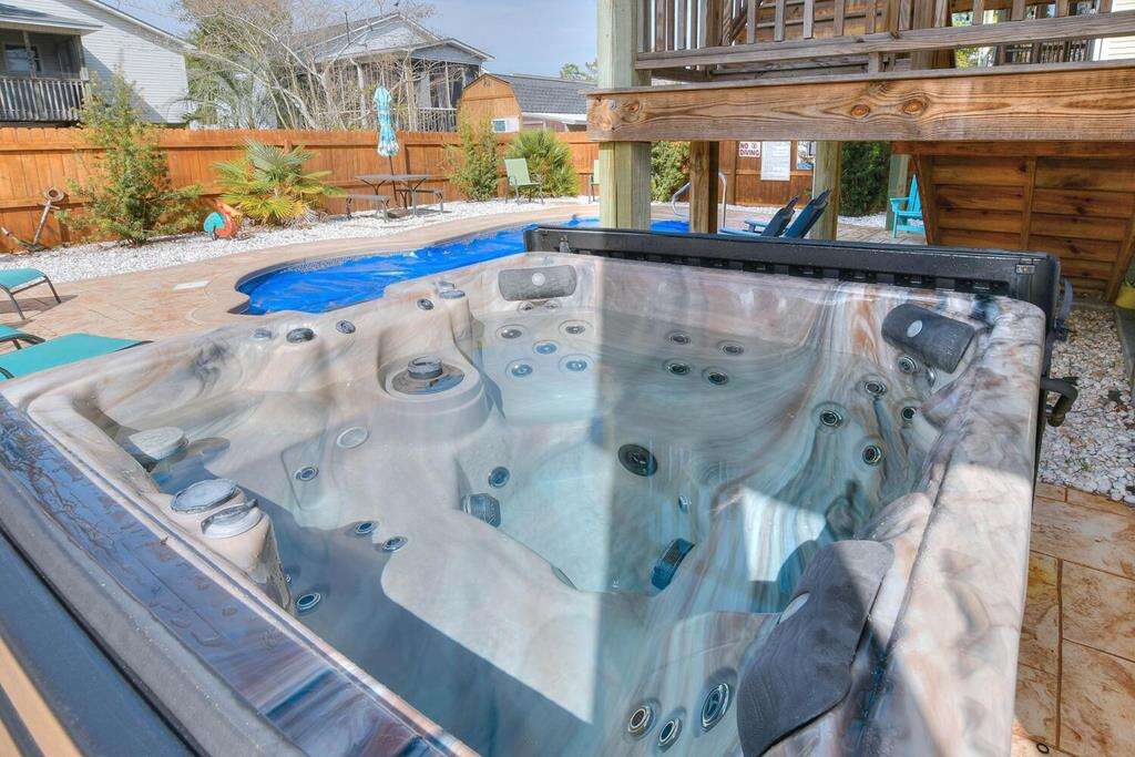 Almost Heaven - 3 Beds, 2 Baths. Private pool & hot tub! It is elegant and perfectly decorated throughout. Gourmet kitchen, hardwoods, upscale decor and lighting throughout. Bring your family and friends to vacation in this one-of-a-kind home in a perfect location here on the island. Screened porch with casual indoor/outdoor living. This home is just a short distance to restaurants, boating, kayaking, parks, golf, shopping, nature trails, surfing, piers, miniature golf, ice cream parlors, grocery stores, and fishing. Enjoy island breezes with beautiful sunrises and sunsets, plus everything the island has to offer in this beautiful home. Make your reservation today before it's taken!