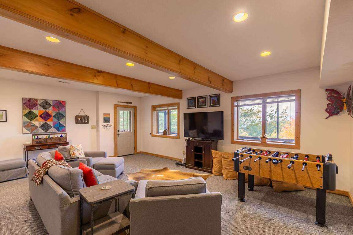 - Whether it's unwinding after a day of adventure or enjoying indoor activities, the lower level amenities cater to both entertainment and comfortable sleeping arrangements.