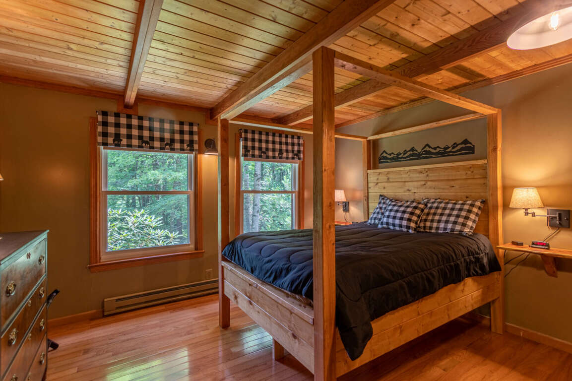 Nestled in the picturesque mountains of Blowing Rock, North Carolina, the Blue Flower Cabin offers a cozy and charming retreat for up to 5 guests, featuring a range of modern amenities and comfortable living spaces. The cabin's interior design exudes a rustic yet elegant ambiance, with high ceilings, a gas fireplace, and a fully equipped kitchen. Guests can enjoy a queen suite with a canopy bed, a loft with a bunk bed, and a spacious living room. Outdoor activities abound on the 10 acres of beautiful woods surrounding the cabin, with wildlife and a creek to explore. Additionally, the location is ideal for outdoor enthusiasts, offering easy access to hiking, fishing, and other recreational pursuits. Whether it's unwinding in the serene surroundings or embarking on outdoor adventures, the Blue Flower Cabin provides the perfect setting for a rejuvenating escape.