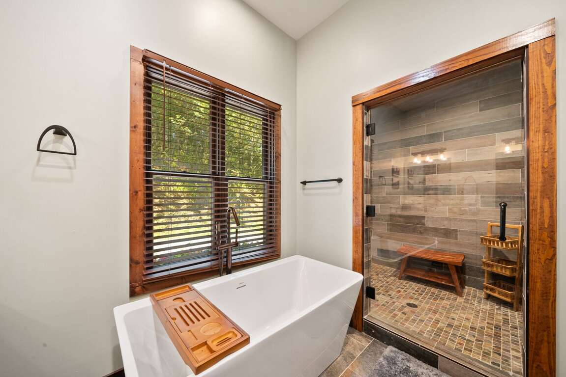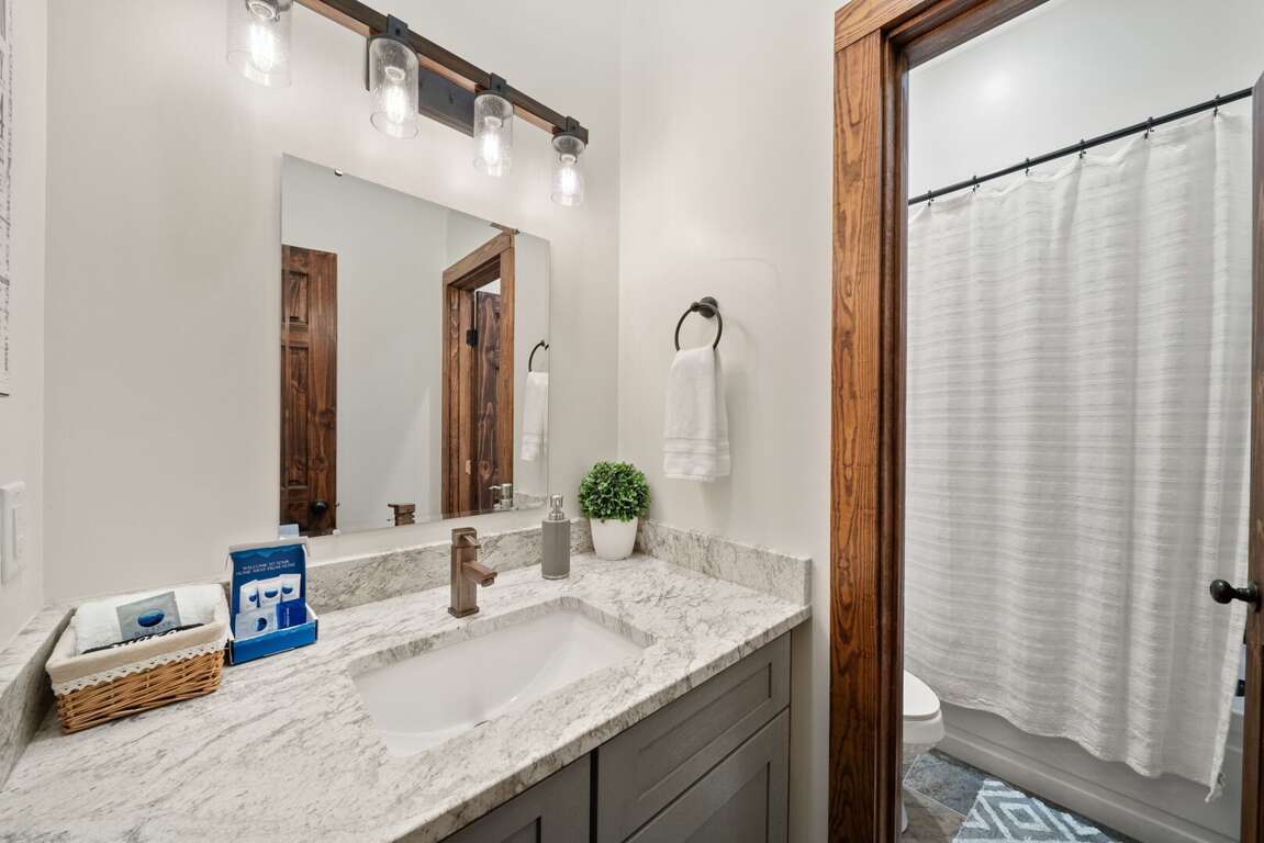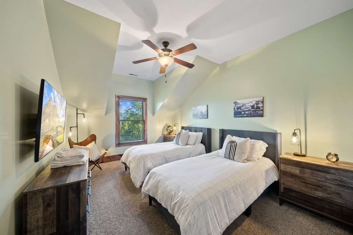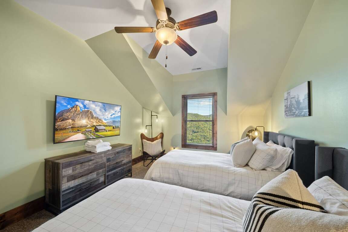 After considering the spacious accommodations and amenities of Cranberry View Lodge, it is essential to review the bedroom configuration, which offers a diverse range of sleeping arrangements for guests. The lower level features two bedrooms with twin over twin bunk beds, while the upper level includes a Queen bedroom with TV, a bedroom with 2 single twin beds and TV, and a loft with a futon. Additionally, the upper level boasts a Queen ensuite bedroom with TV and private bathroom, as well as a bathroom in the hallway. The main level is home to the luxurious Master suite, complete with a King bed, TV, doors to the deck, and a private bathroom featuring a soaking tub, double granite vanities, and a large tiled shower. This thoughtful configuration ensures comfort and privacy for all guests.