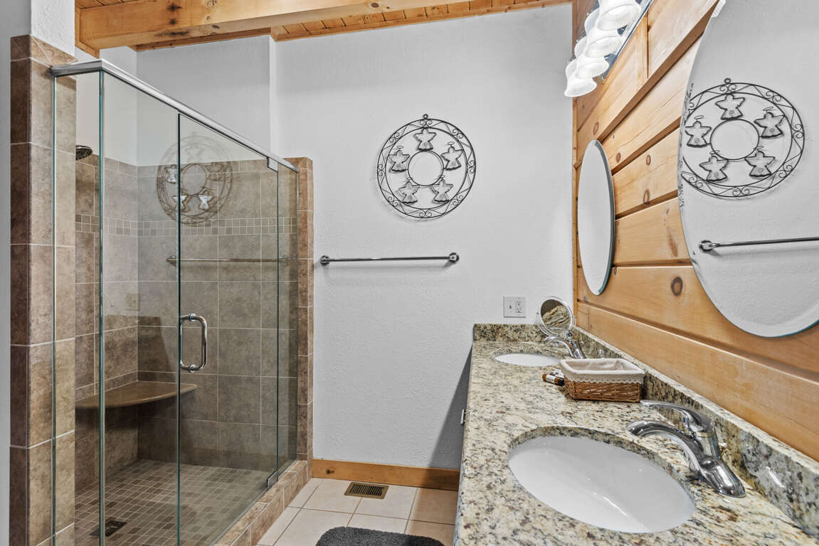 The lower level provides additional accommodations, including two bedrooms that share a full bath. One room has two queen beds, while the other features two twin-over-full bunk beds—each with its own TV. The shared bathroom across the hall has been newly renovated with a tiled shower. This level also provides access to the converted garage, now a heated and cooled game room, complete with a ping pong table, foosball, and a large-screen TV with comfortable seating. <br />