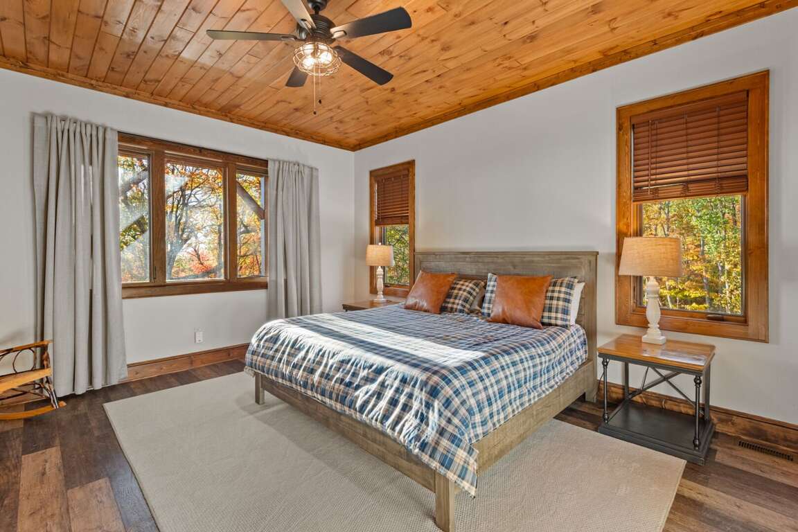 Nestled amidst the tranquil woods at an elevation of 4500 ft on a 2-acre lot, the luxurious Blue Ridge View at Eagles Nest boasts 4 bedrooms, 3 full bathrooms, and 1 half bathroom, offering a capacity to comfortably accommodate up to 12 guests. The interior design elements of this opulent retreat feature vaulted, tongue and groove ceilings with exposed beams, custom tile work, and granite countertops in all bathrooms. Guests can indulge in the expansive 2-story southwestern facing deck with mountain views. Outdoor recreational activities abound, with access to amenities such as a BBQ pavilion, playground, hiking trails, and a mini-golf course. Additionally, nearby attractions include the Beech Mountain Ski Resort and a Great Camp for concerts and putt-putt golf. For those seeking freedom and luxury in the heart of nature, this property offers an unparalleled experience.
