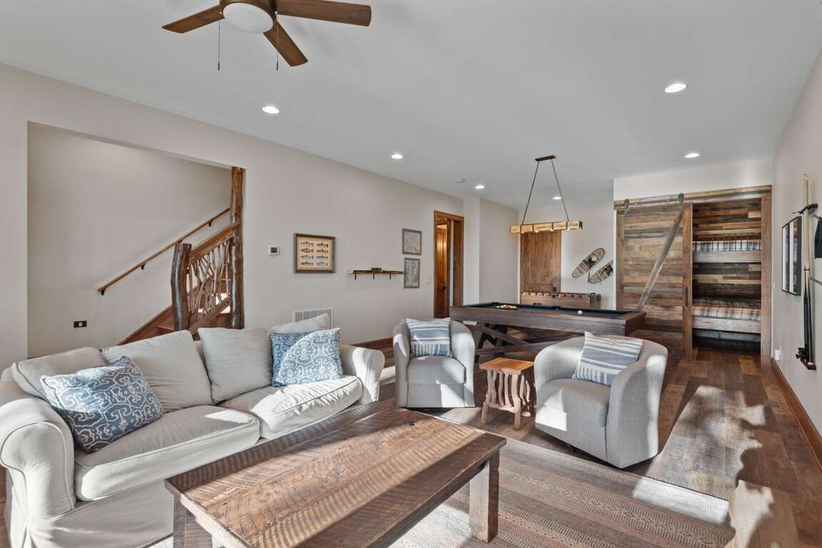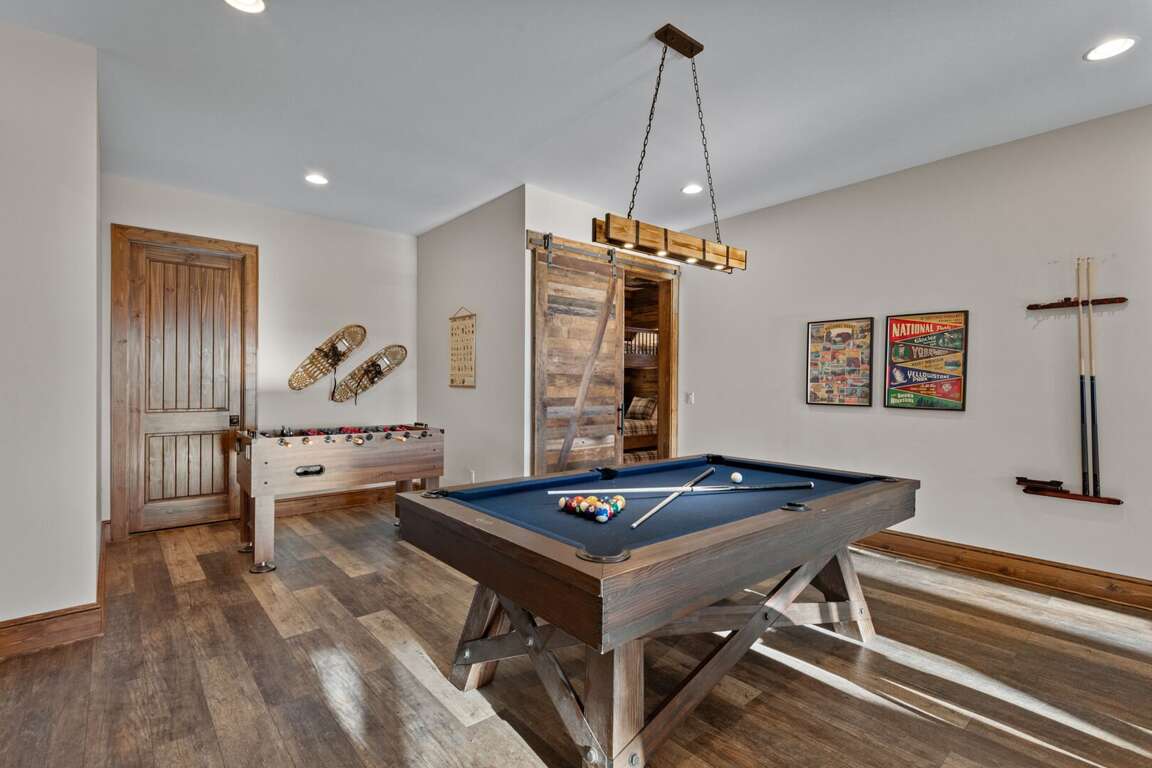 Indulge in the opulent experience of the property's amenities, including a large gourmet kitchen, vaulted, tongue and groove ceilings with exposed beams, custom tile work, and granite countertops in all bathrooms, as well as the convenience of TVs in every room and an Xbox in the bunk room.