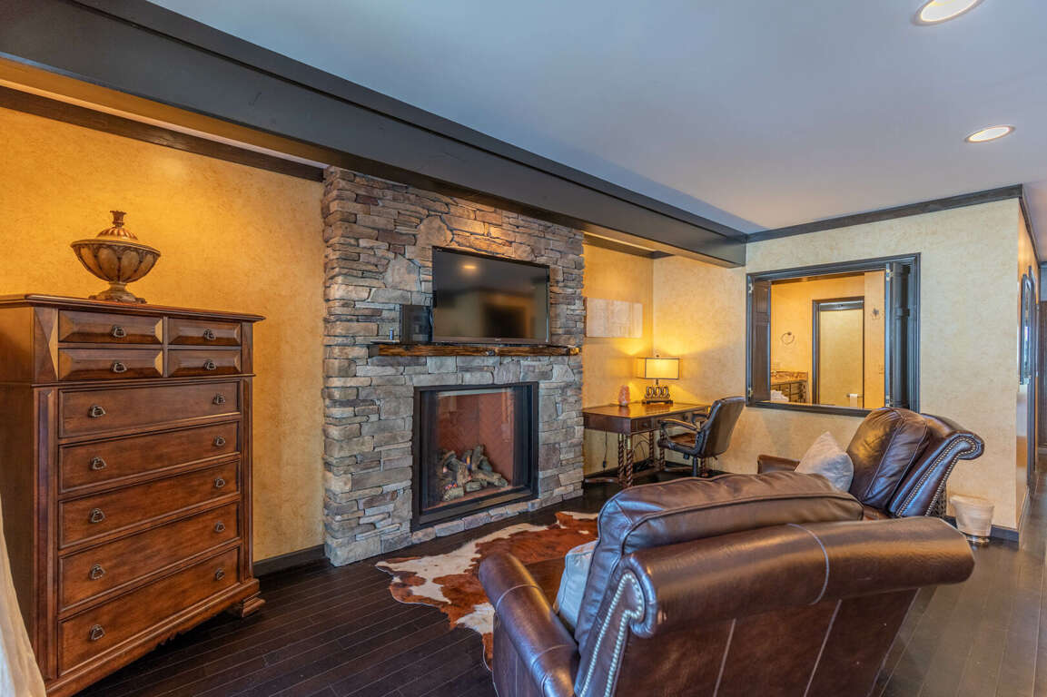 The Halftime Haus on Beech Mountain, NC offers a luxurious and spacious master suite, providing a tranquil and opulent retreat for guests seeking relaxation and comfort during their stay. The luxury master suite features a king-size bed, a sitting area, and a gas fireplace, creating the perfect ambiance for a romantic getaway. Guests can also enjoy private deck access from the master suite, offering a secluded outdoor space to take in the stunning mountain views. The suite includes a minibar and an en suite bath with a champagne bubble bathtub and double shower, providing a lavish and indulgent experience. With its separate living space and thoughtful amenities, the master suite at Halftime Haus is ideal for those seeking a peaceful and romantic escape.