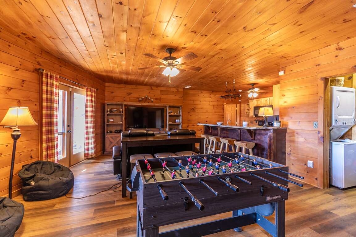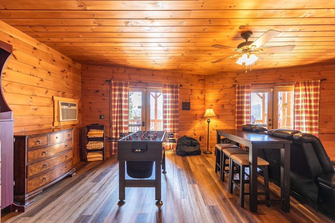 After ensuring a restful retreat with its comfortable sleeping arrangements, the Beary Relaxing Cabin also offers an array of enticing amenities to enhance the overall vacation experience for its guests. The well-stocked kitchen with ample counters and large granite island provides the perfect space for preparing meals and gathering together. The dining area, with table seating for six inside and six on the deck, allows for enjoyable family meals or entertaining friends. Guests can also enjoy the game room with a 4-in-1 game table offering pool, air hockey, ping pong, and foosball. Additionally, the cabin features a covered deck with seating and a fire table, as well as a lower patio with seating and a 12 by 8 hot tub. Family-friendly activities and nearby attractions such as Boone and Sugar Mountain ensure a memorable and enjoyable stay for all.