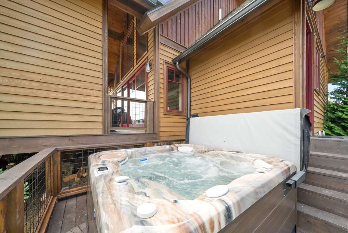 The Eagles Nest cabin offers a luxurious and well-appointed space, complete with three bedrooms, a fully-equipped kitchen, and a cozy living room with a fireplace, making it an ideal retreat for families or groups of friends. The cabin decor exudes a rustic charm, blending modern amenities with a warm, inviting atmosphere. The outdoor living space is equally enchanting, featuring a saltwater hot tub, perfect for unwinding under the stars after a day of adventure. The cabin's design seamlessly integrates indoor and outdoor living, with double doors leading from the living room to the inviting outdoor space, creating a harmonious flow for gatherings and relaxation. Whether it's savoring a morning coffee on the porch or enjoying a barbecue in the evening, the Eagles Nest cabin provides the perfect backdrop for embracing the freedom of nature in style.