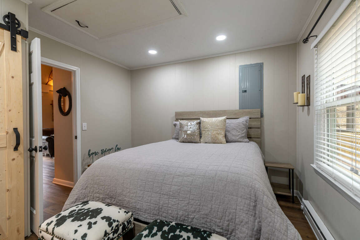 Featuring elegant design elements and modern amenities, the interior of Wolfman Lodge exudes comfort and sophistication, providing a welcoming retreat for guests. The lodge boasts a tasteful design and decor, with a functional layout that enhances the overall guest experience. The living room is adorned with a wood-burning fireplace, offering a cozy ambiance, while the kitchen is equipped with granite counters and new stainless appliances, catering to the needs of the discerning traveler. Each of the three bedrooms is fitted with a smart TV, ensuring entertainment and relaxation. The primary suite features a custom tiled tub/shower combo, adding to the luxurious feel. The single-level living space is thoughtfully updated, ensuring a seamless blend of style and practicality for a memorable stay.