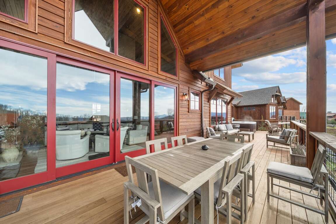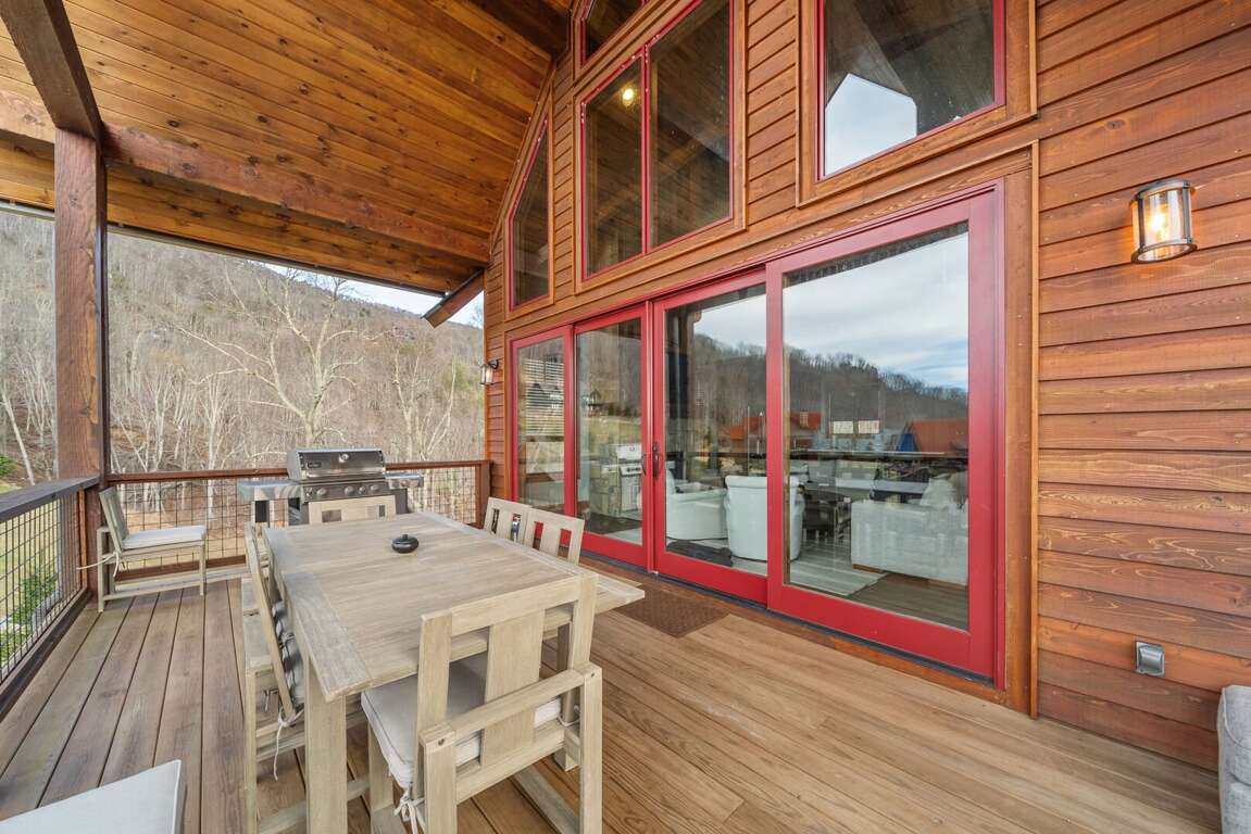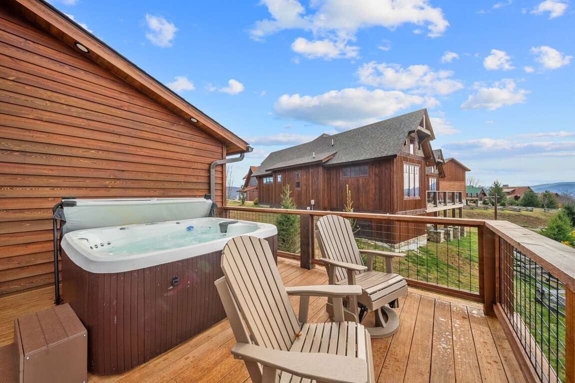 <p style="margin-bottom:0in; margin:0in 0in 8pt"><span style="font-size:11pt"><span style="background:white"><span style="line-height:normal"><span style="font-family:Calibri,sans-serif"><span style="font-size:12.0pt"><span style="background:white"><span helvetica="" style="font-family:"><span style="color:black">If you intend to prepare any meals during your stay, you’ll love the floor to ceiling cabinets, custom granite counters and stainless-steel appliances that the kitchen provides. The dining table comfortably seats eight guests with another three barstools at the large, granite island. The kitchen is stocked with all of your needs for preparing a delicious meal. On warm summer nights, your party might be inclined to share a meal on the deck instead and enjoy the mountain view. With plenty of deck furniture, a gas grill always stocked with propane for guest use, the outdoor fire table, and a new hot tub, the deck is always an inviting place to unwind. </span></span></span></span></span></span></span></span></p>