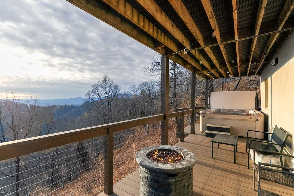 Outside, relax in the hot tub and watch the sun cascade over the expansive sky! The double deck provides a gas grill with propane included, and highlights space for entertaining and outdoor dining with a view. The lower level deck has seating and a gas firepit to enjoy the sunset.<br />
