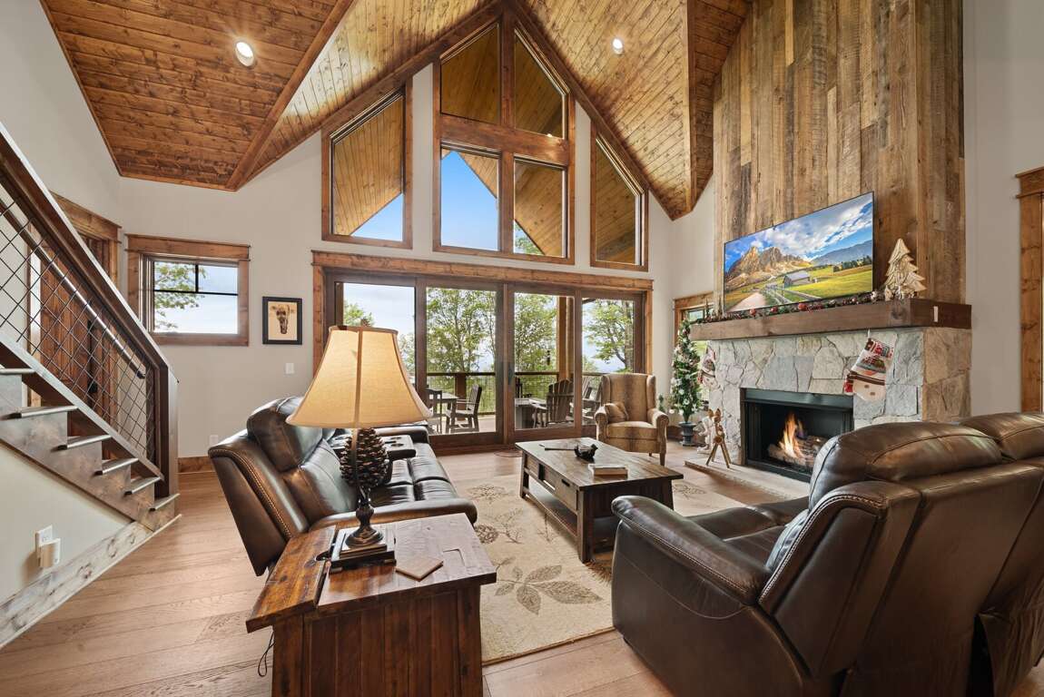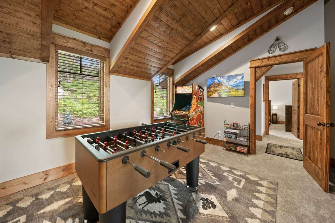 Inside relax in the great room by the fireplace or play a few rounds of foosball or a game on the vintage arcade with the kids in the upstairs loft game room. <br />