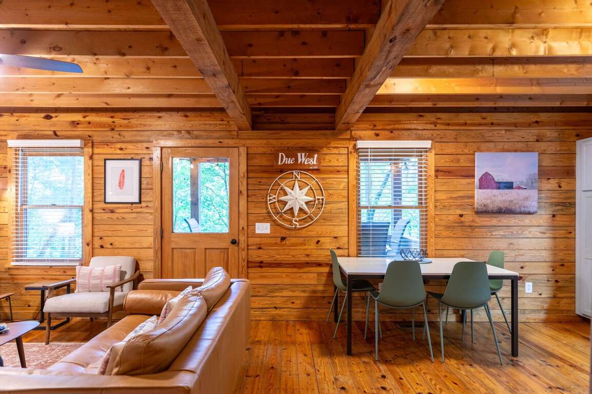 Uncover comfort in our Due West 2-bedroom log cabin, furnished to cater to your needs. Equipped with 864 square footage, internet access, television, washer/dryer, and close to various activities.