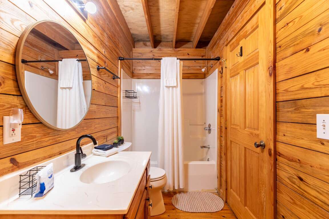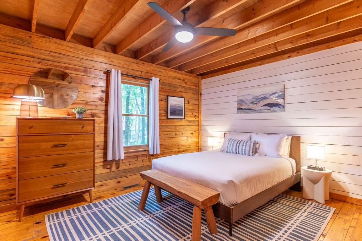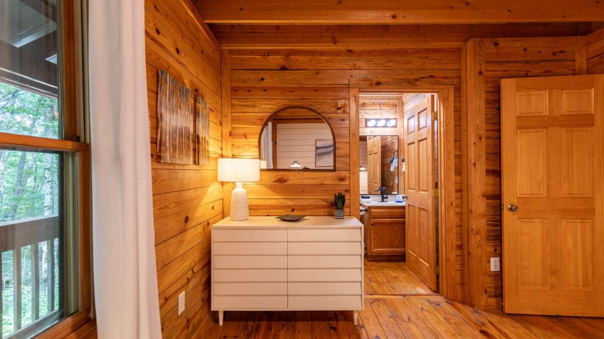 <span style="line-height:normal"><span style="background:white"><span open="" sans=""><span style="color:#2a2a33">Get a refreshing night’s sleep in either of the cabin’s suites. There’s a King suite and a Queen suite, and each offers a private bath with tub/shower. Wake up to the gentle sounds of birds chirping and sun rays peeking through the windows, reminding you of the picturesque forest just beyond your doorstep.</span></span></span></span><br />