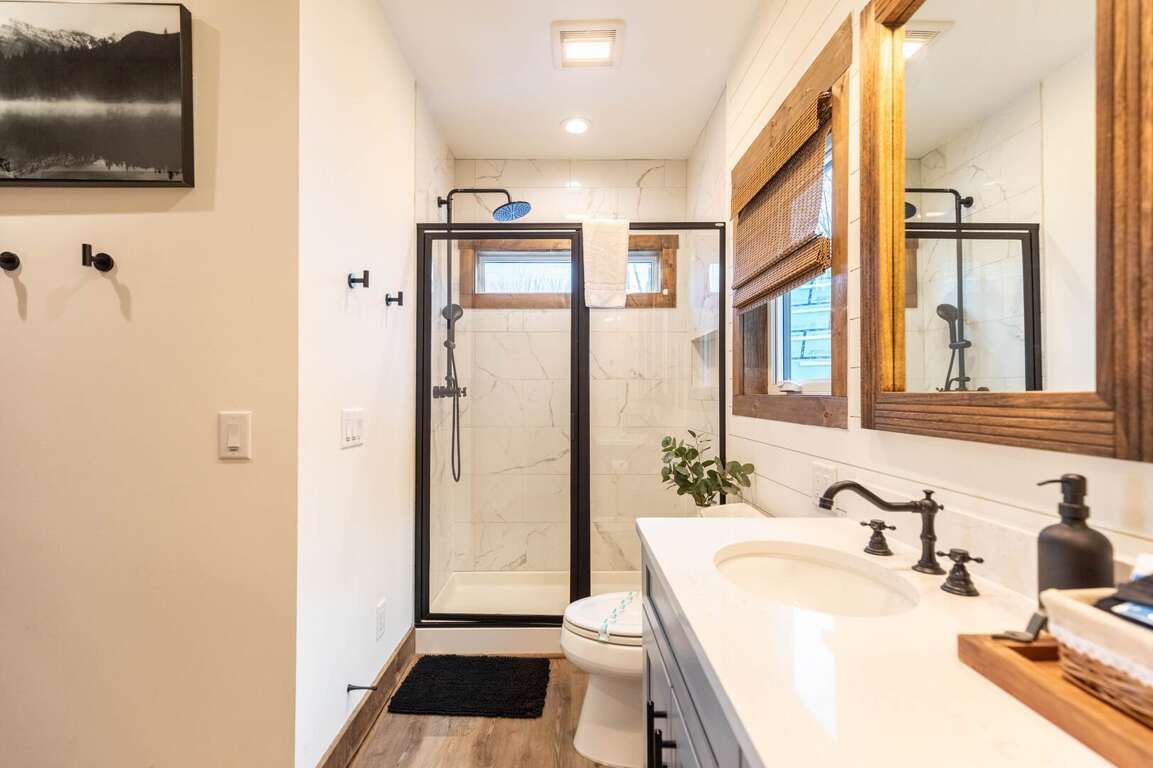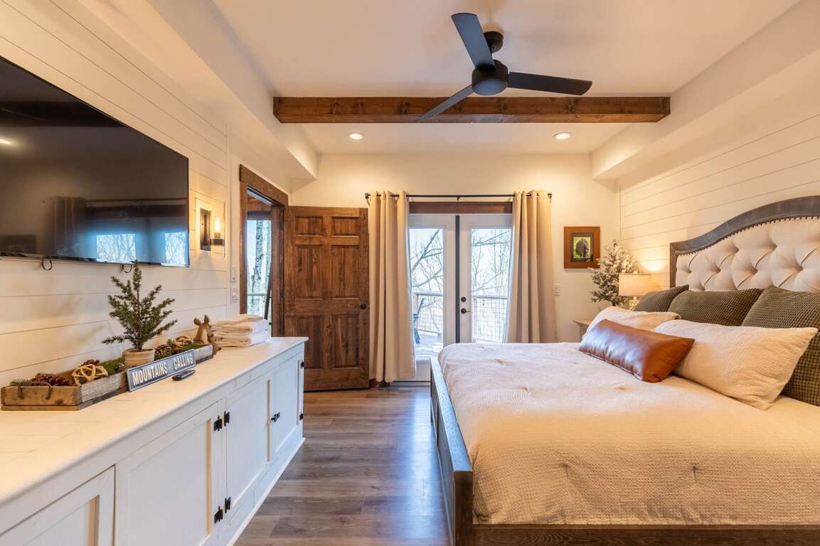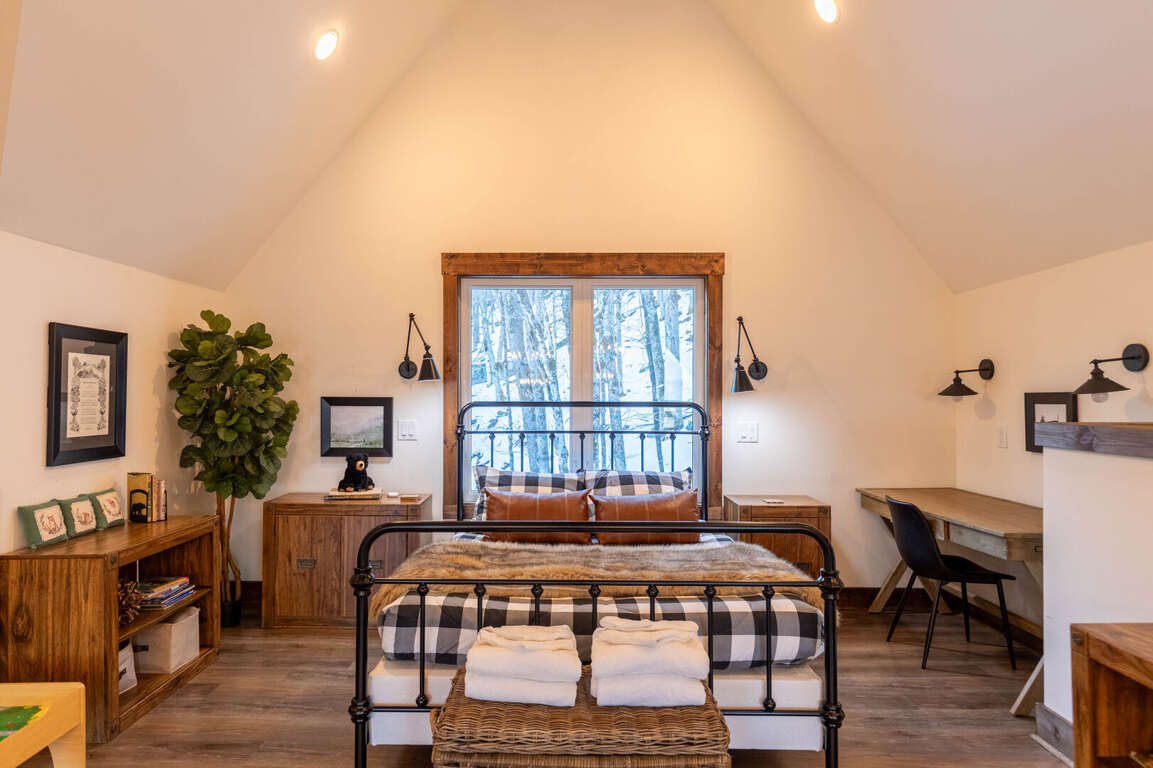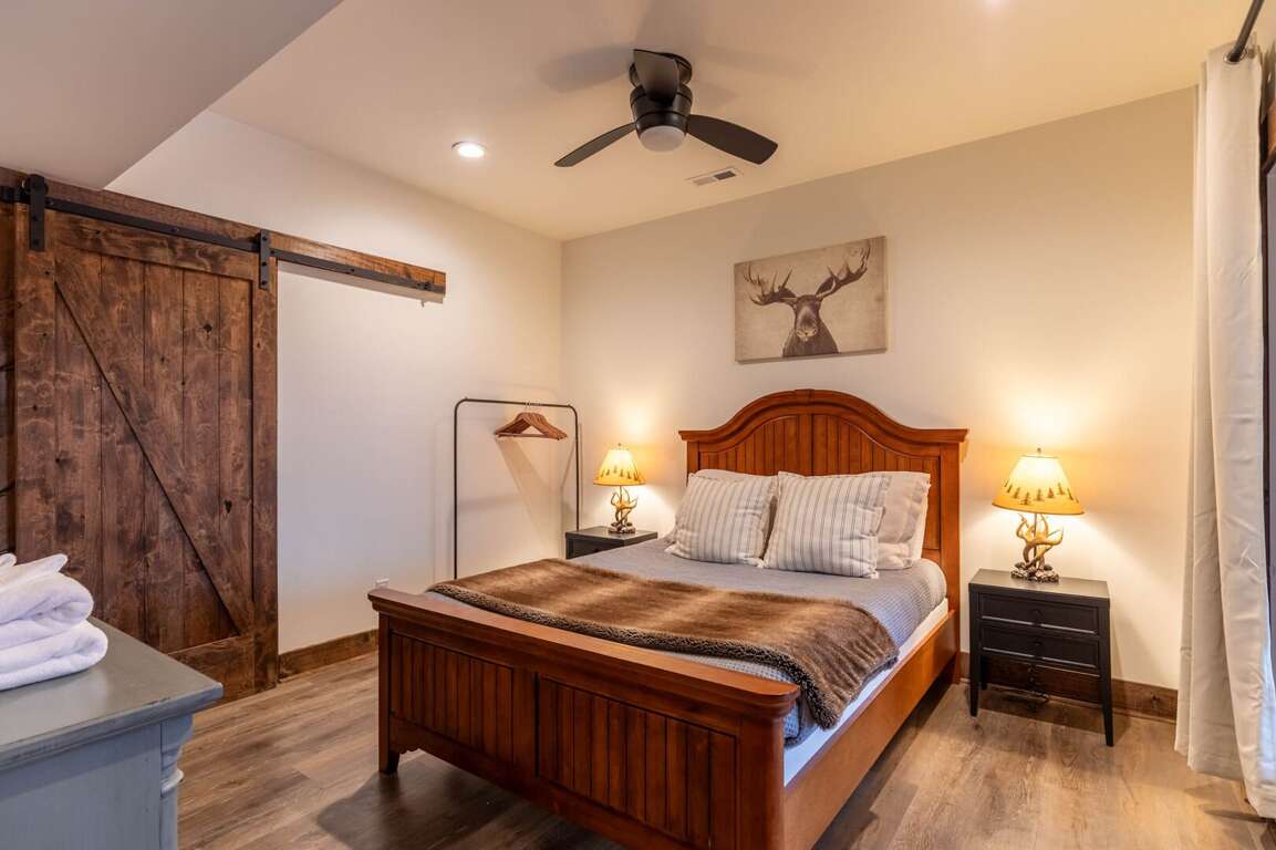 Heading downstairs to the basement level, you'll find a bedroom with a QUEEN bed that grants access to the lower-level deck and its mountain views. The basement level also houses a built-in double bunk bedroom, complete with two TWINS on the uppers and two QUEENS on the lowers. Additionally, the basement features a full bathroom with a shower, a laundry room, and a spacious game room equipped with a 3-in-1 game table, Roku projector, well-stocked game closet, and access to the lower-level deck. Conveniently, all levels of the home are connected by interior stairs.<br />