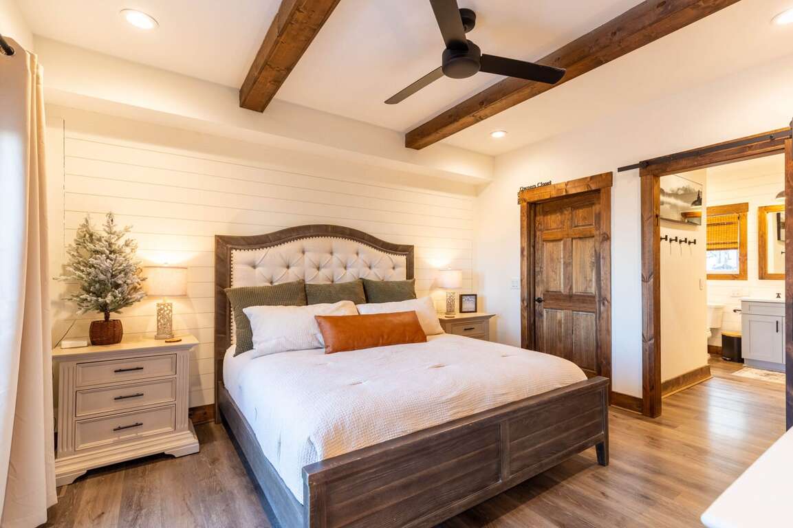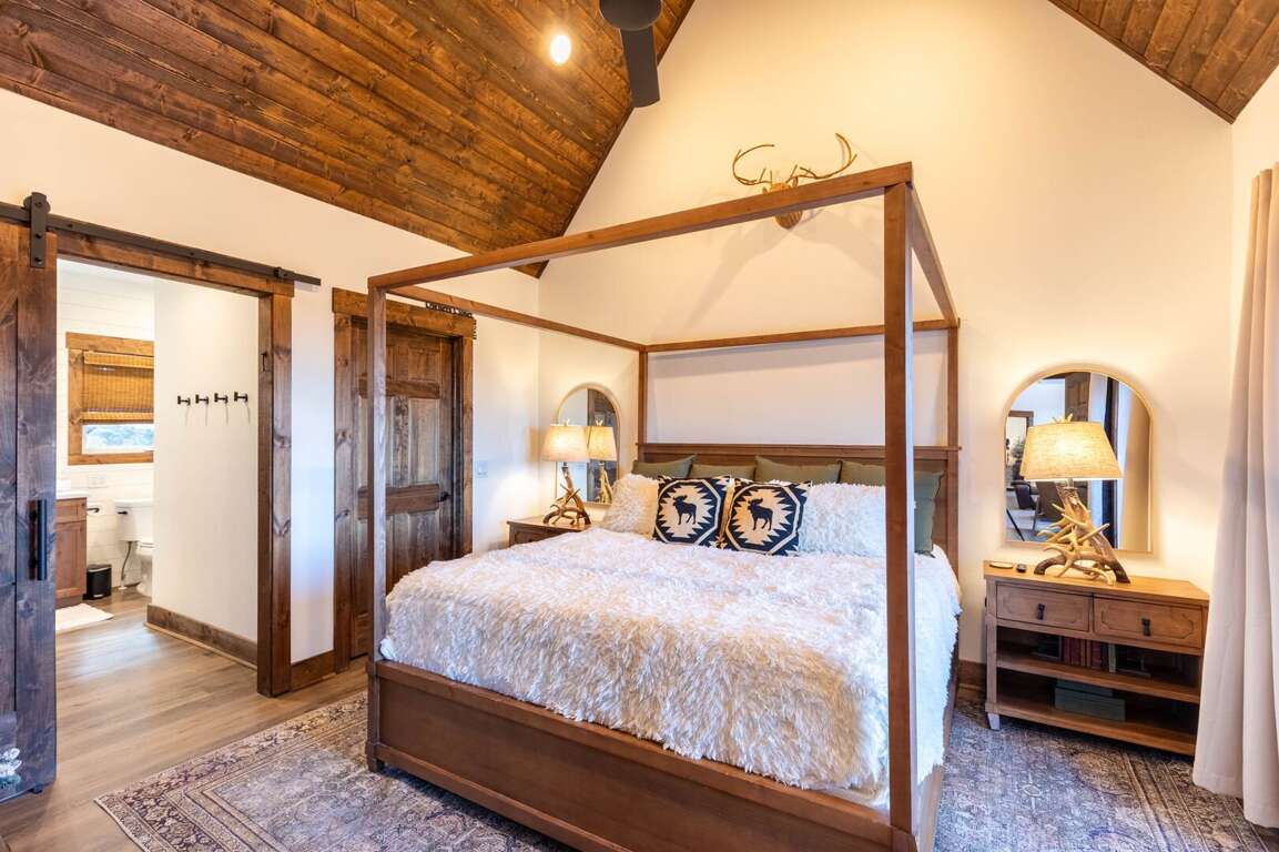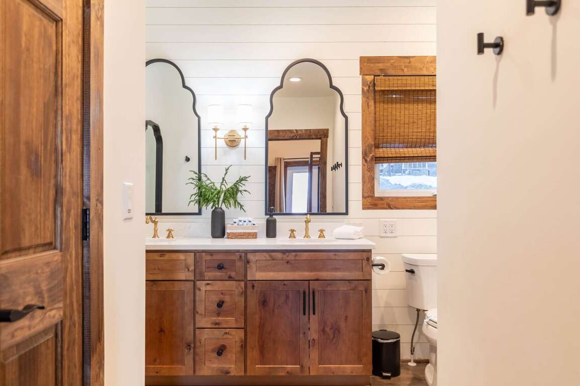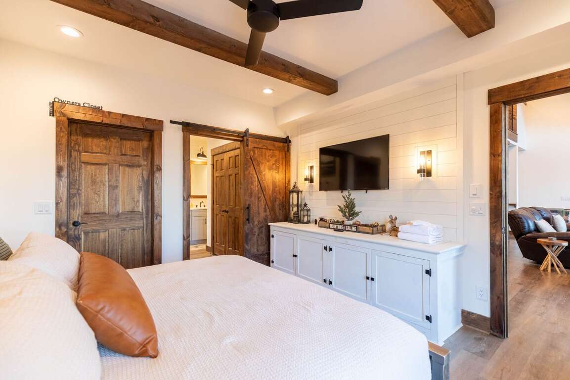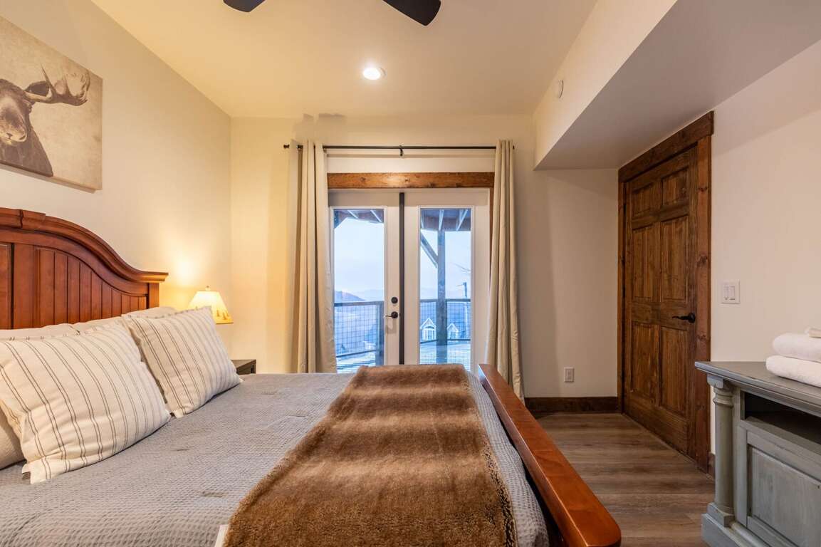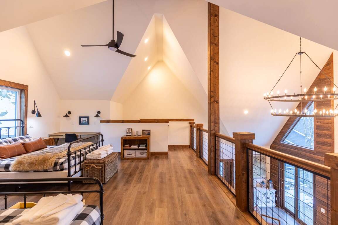 The main level of the home showcases two grand master suites, each furnished with KING beds. Both suites provide access to the upper-level deck, allowing guests to enjoy scenic mountain vistas. The connecting bathrooms of these suites feature double sinks and tiled showers. Additionally, the main level presents a delightful kitchen with an island seating area for four, a dining space accommodating ten, and a stunning two-story living room with a cozy gas fireplace. Upstairs, a charming loft area overlooks the living room and offers a QUEEN bed along with a FULL daybed featuring a TWIN pull-out trundle. The loft also includes a full bathroom with a tub/shower combination.<br />