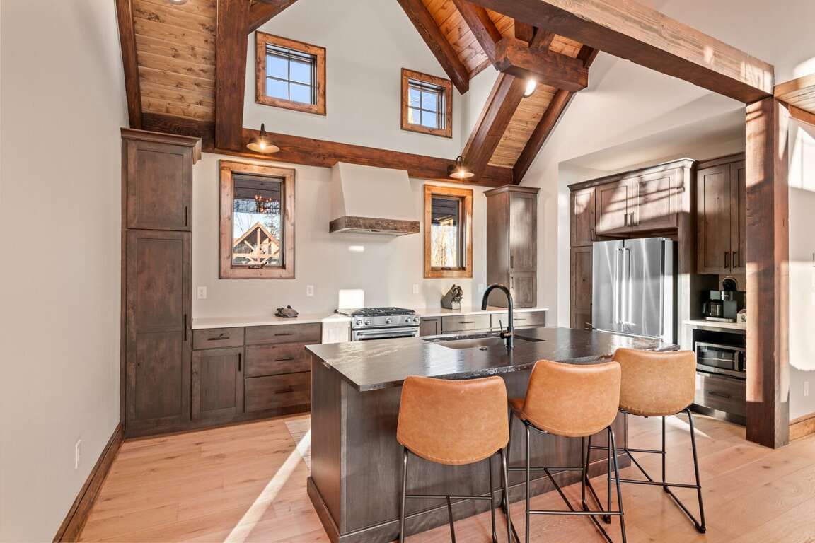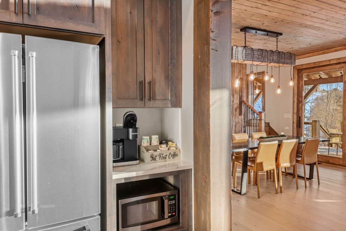 For the culinary enthusiast, the kitchen is nothing short of a dream. Boasting custom granite tile counters, stainless steel appliances, and a large central island, it’s a space designed to inspire creativity and bring people together. Whether preparing a delicious meal or enjoying a leisurely breakfast, this kitchen has all the kitchen basics you could need. The dining area is steps away and offers a stunning live-edge table that captures the essence of the mountains—beautiful, rustic, and elegant.<br />