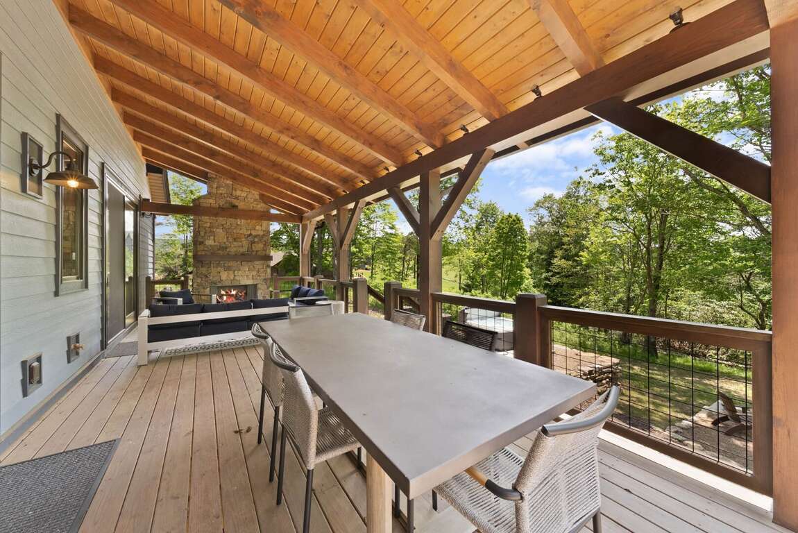 Step outside to discover the mountain air and ambiance. The large, partially covered deck is an entertainer’s paradise, with a dining area to enjoy meals al fresco and comfortable seating around the outdoor gas log fireplace, perfect for relaxing at the end of an adventurous day. A propane grill awaits, ready to create your favorite meals. Just steps down from the deck, will lead you to a nice soak in the hot tub or to a family gathering around the fire pit, where laughter and stories flow freely as the flames dance in the night air.<br />