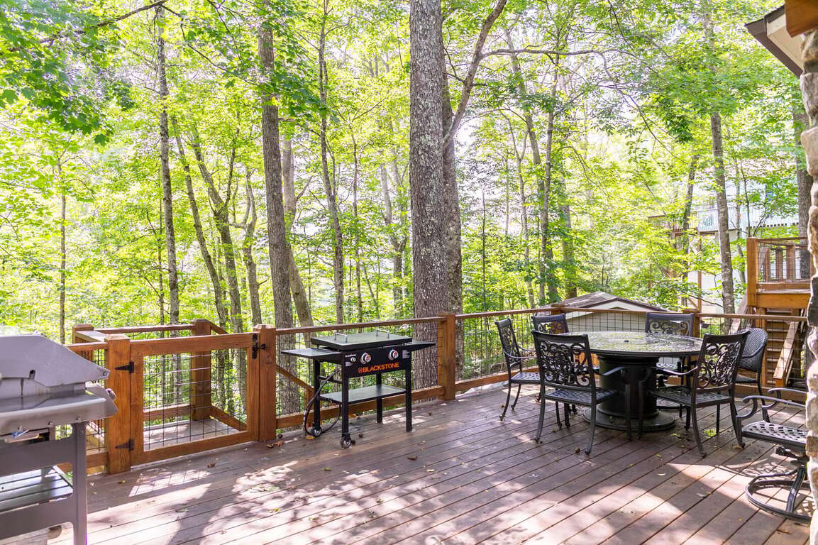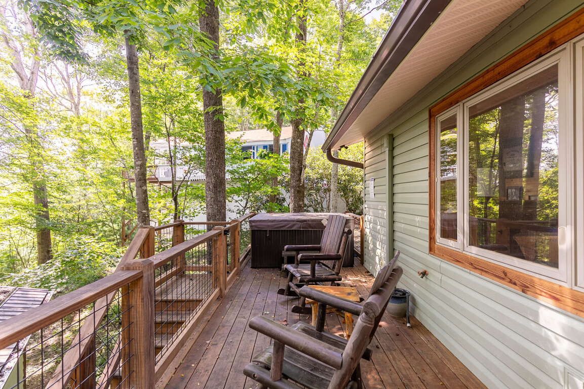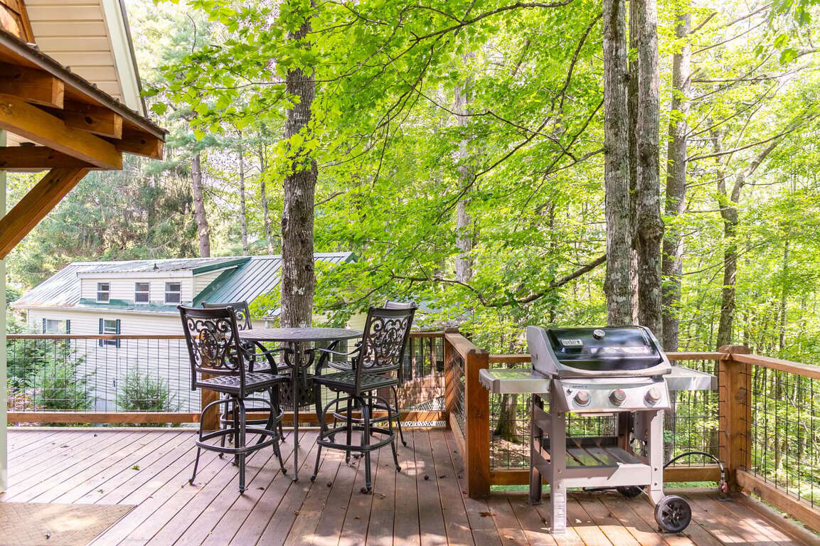Comfortable seating and peaceful wooded surroundings make this a true mountain escape<br />