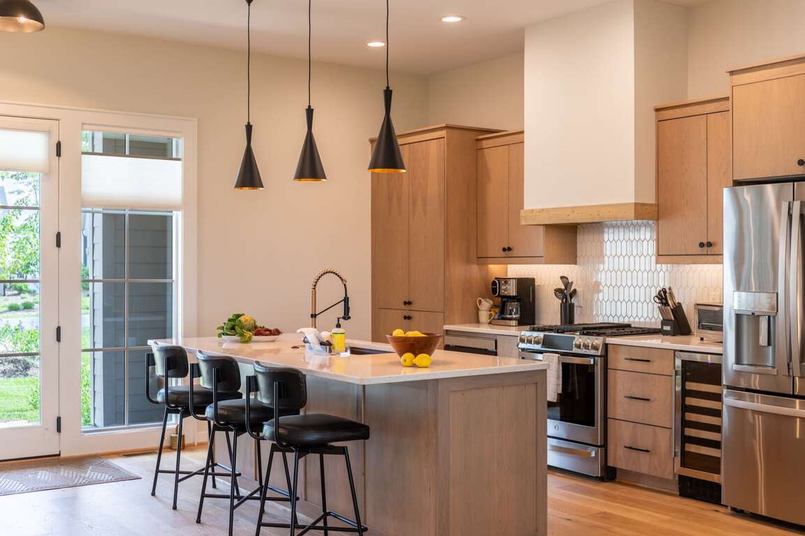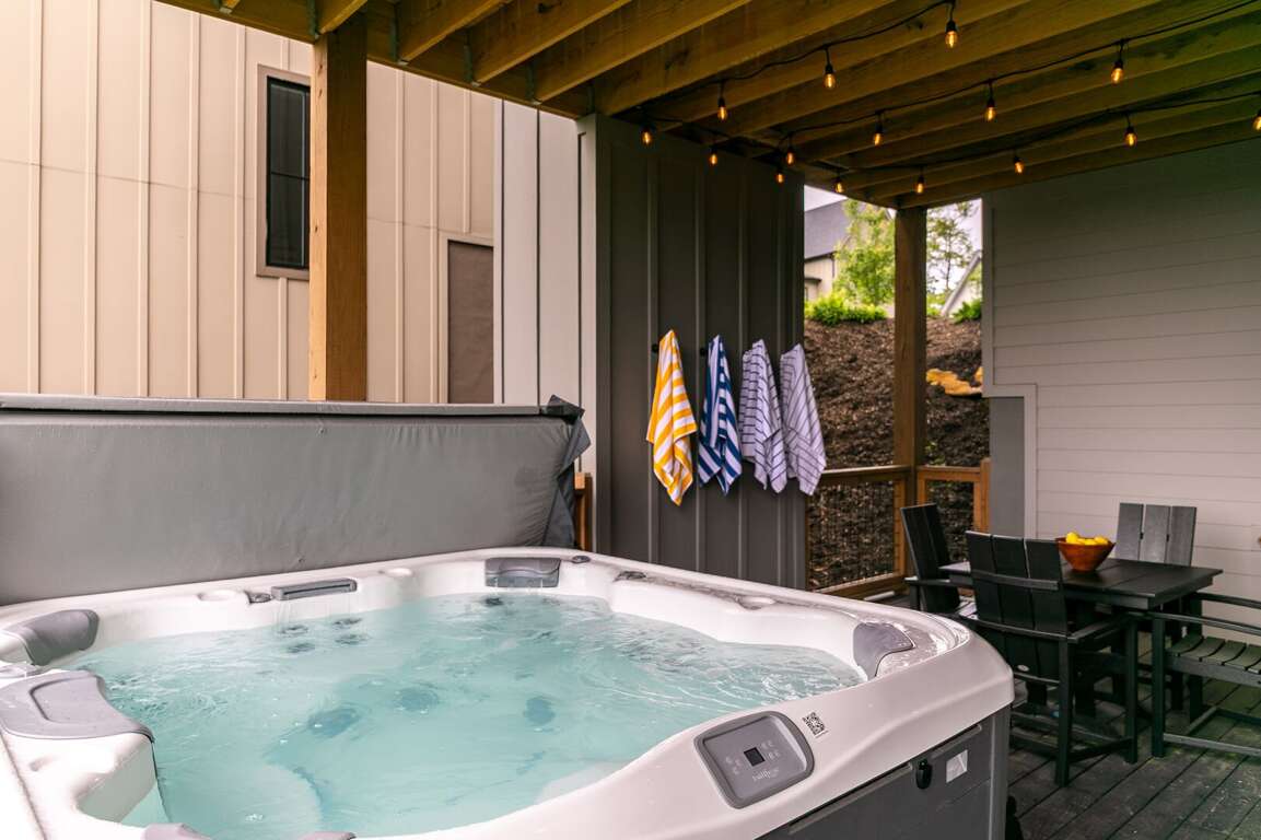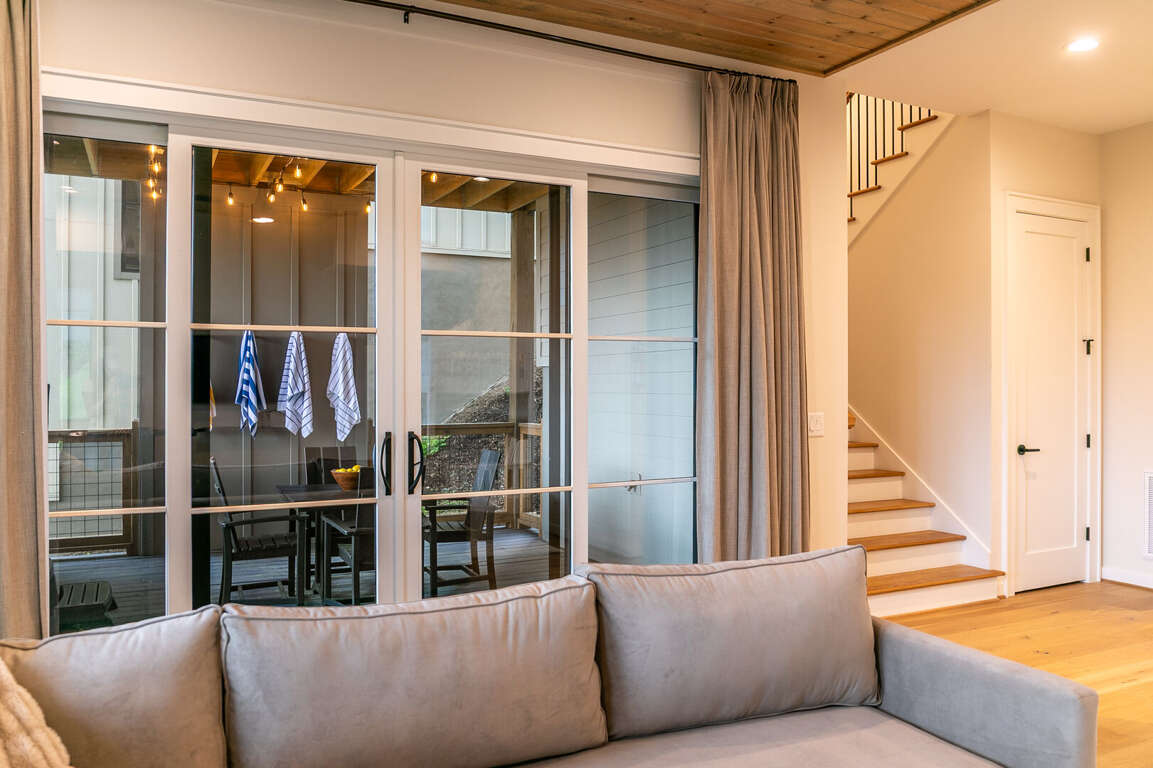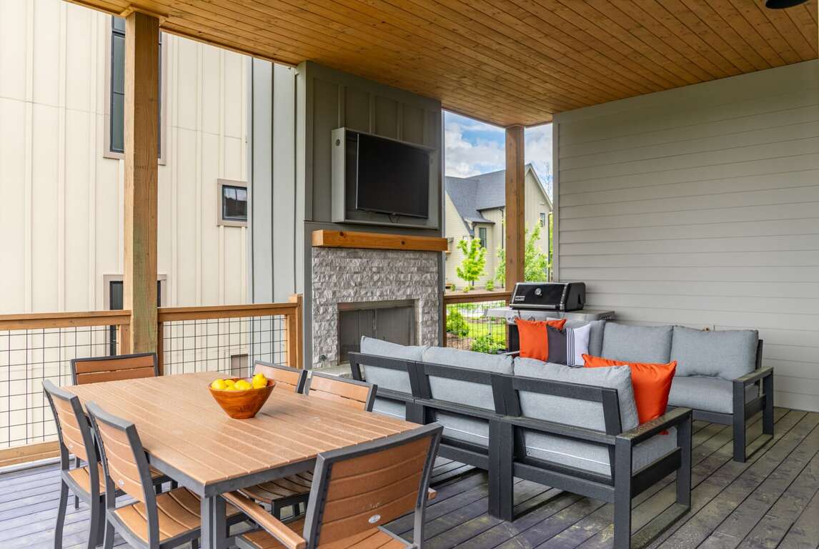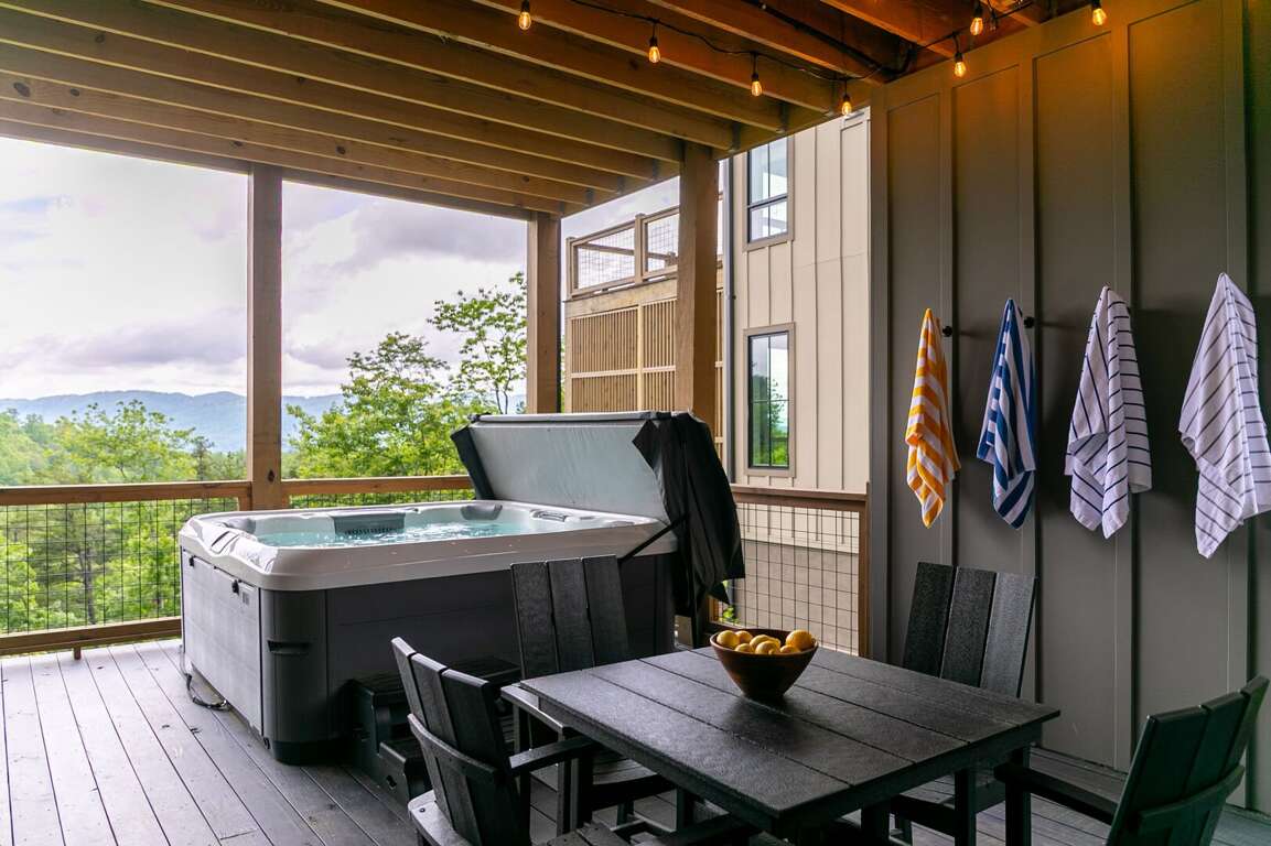 The lower level of the home is all about fun and flexibility. A cozy lounge area features a sleeper sectional sofa, a flat-screen TV, and a raised twin bed that’s great for kids or extra guests. This level includes a foosball table, a mounted arcade cabinet, LEGO, board games, and toys for children, creating a space that will delight guests of all ages. Two more sets of sliding doors open onto another luxurious deck, where a private hot tub awaits—perfect for unwinding after a day of hiking or exploring. The third bedroom is located on this level as well, offering a comfortable queen bed and a desk, ideal for remote work or quiet reading. A full bath with a shower/tub combo and a spacious quartz vanity rounds out the space, making it perfect for families.<br />