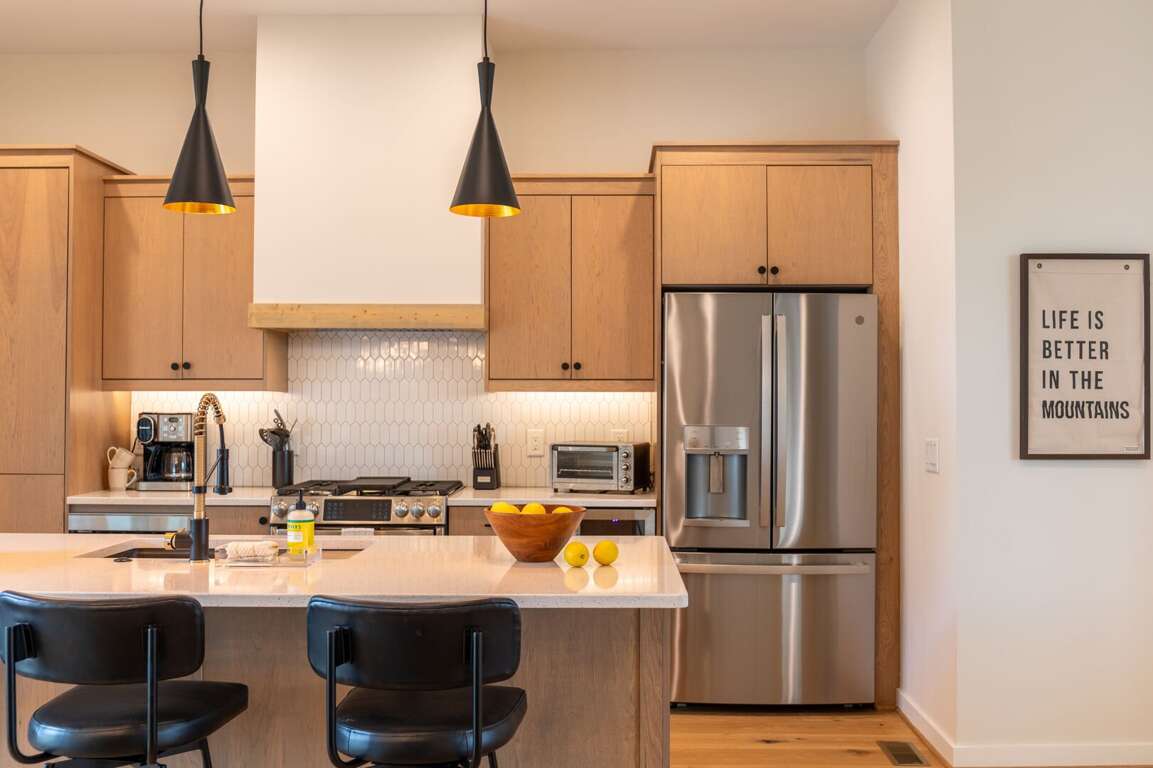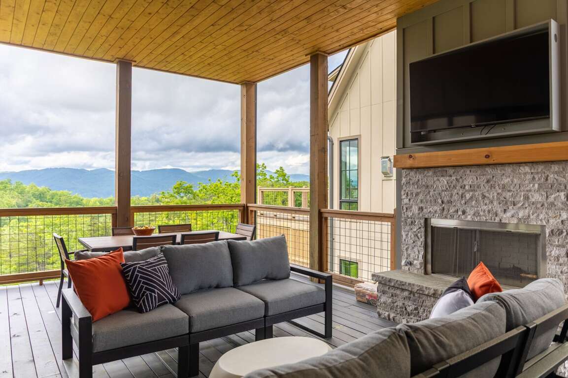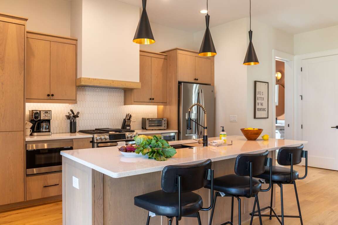 On the main level, you’ll find a spacious open layout perfect for gathering. The kitchen features quartz countertops, custom cabinetry, stainless steel appliances, a large center island, and everything needed for preparing your favorite dishes. Just off the kitchen is a dining area. With seating for 8 at the dining table and additional seats at the counter just a few feet away, it's ideal for sharing meals and making memories with all your friends and family. The main level living space invites relaxation, with a large sectional sofa and additional seating arranged around a cozy gas log fireplace and a wall-mounted flat-screen TV. The windows and two sets of double sliding doors showcase the sweeping mountain landscape, connecting you to the grandeur of the high country. The main level deck is designed with tranquility and gathering in mind. Enjoy your favorite cup of coffee or glass of wine as you look over the breathtaking view. On warm summer nights, you’ll love sharing meals around the outdoor dining table, and nothing will top the great conversations you’ll have around the deck’s wood fireplace on crisp autumn evenings under the stars.<br />