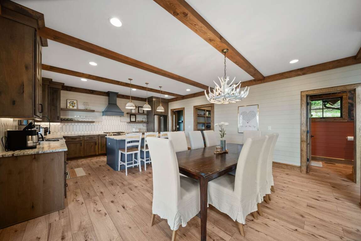 Step inside and be captivated by soaring timber-framed ceilings, warm hardwood floors, and a grand stone and shiplap fireplace that anchors the open-concept living space. Oversized windows flood the home with natural light and frame breathtaking mountain vistas, creating a serene backdrop for every season.<br />