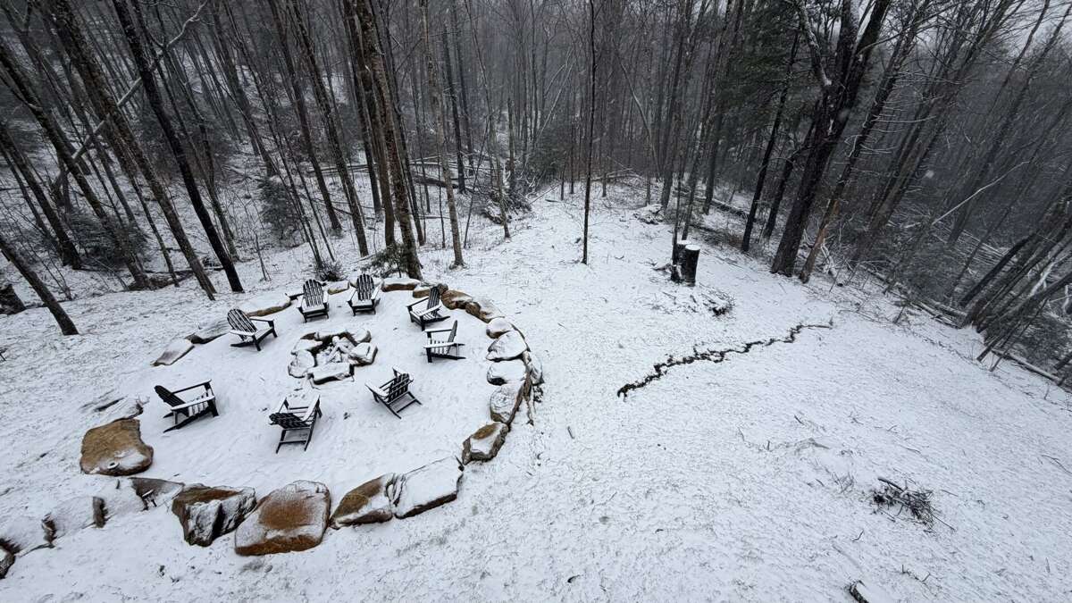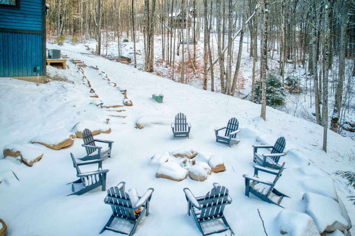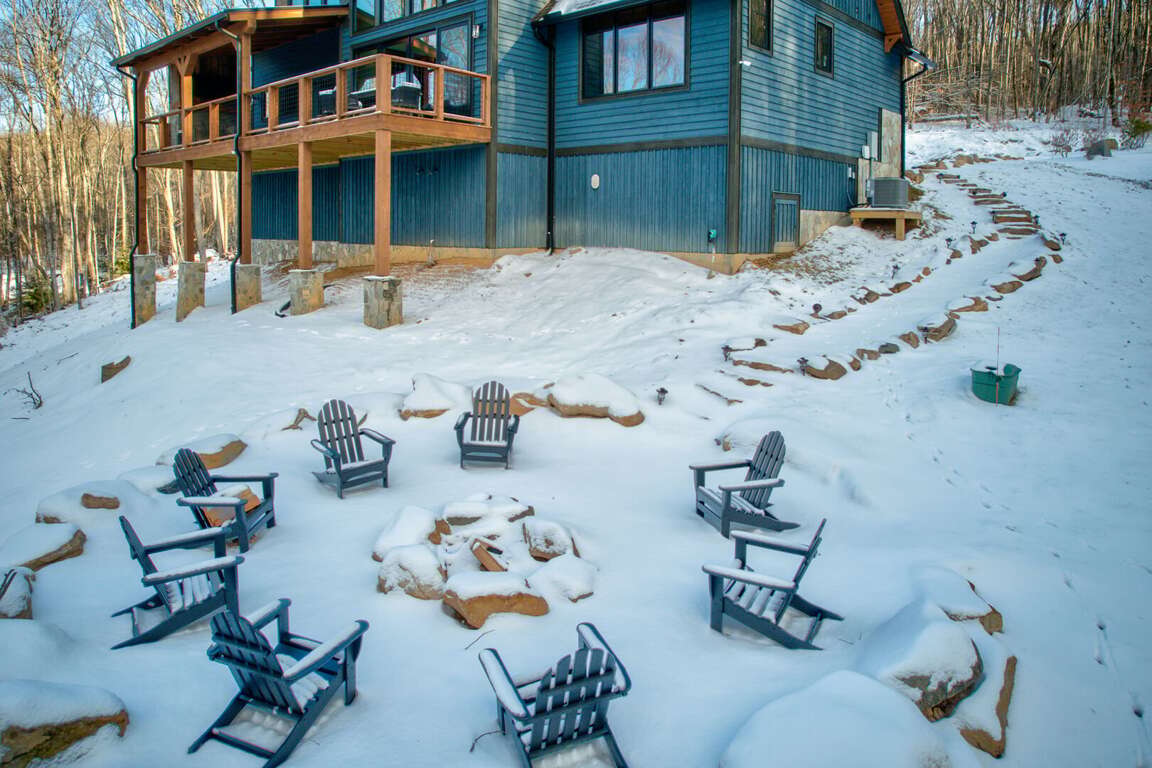 Outdoor living is just as inviting. The deck is half covered and half open—perfect for any weather. The covered side offers a gas fireplace, TV, and seating, while the open side has a dining table and a gas grill for mountain cookouts. A lined path leads to the fire pit, complete with Adirondack chairs for evenings under the stars.<br />